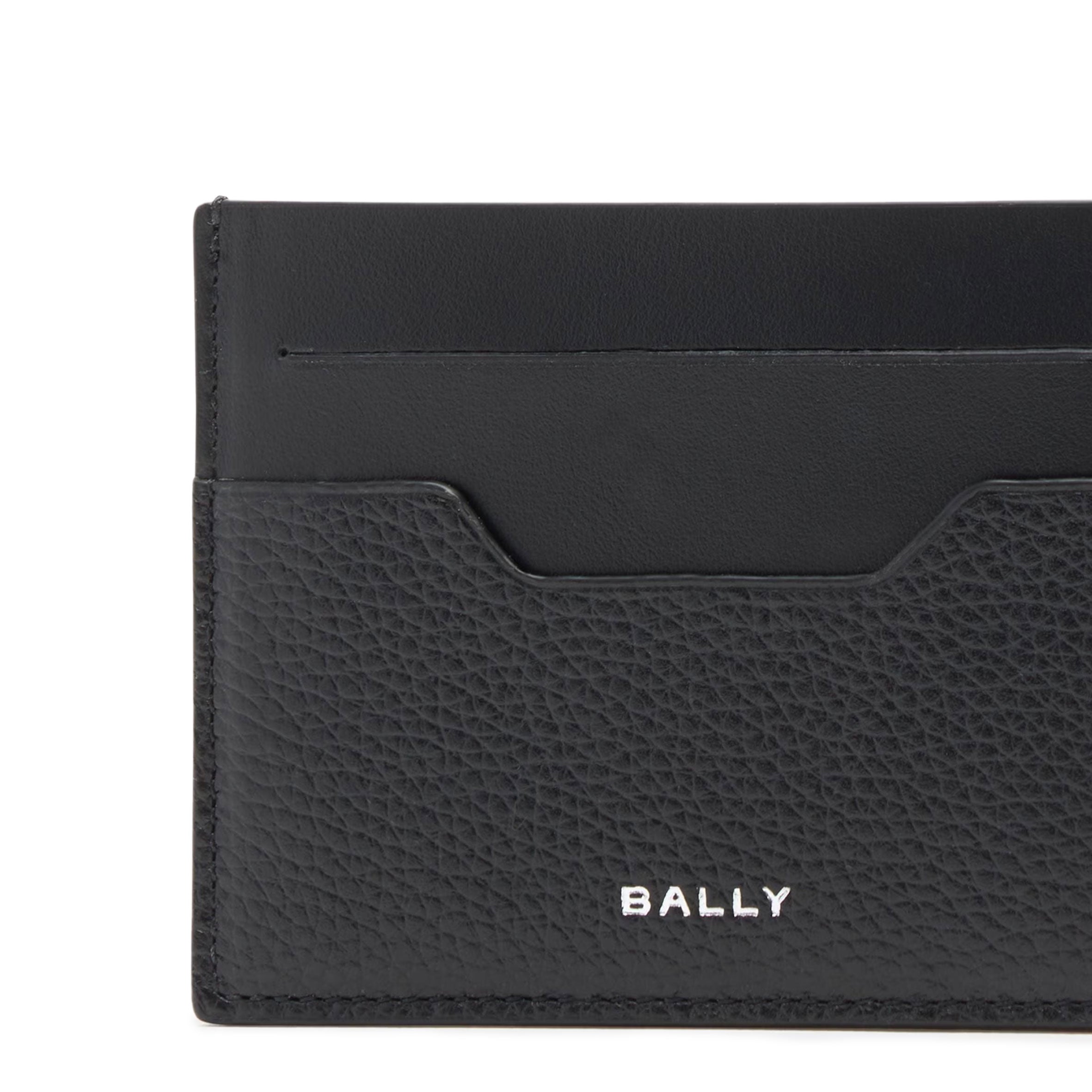 Elegant and versatile, the Capitol card holder in black calfskin is enriched by a grained finish and a Bally logo at the front.