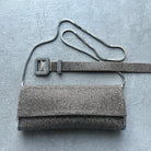 Adorned with two metal oval metal plates and made of pure silk satin and crystal mesh, the Kate feautures and adjustable shoulder strap that allows for versitile styling and can be worn over the shoulder or cross body in addition to being worn as a clutch bag.
