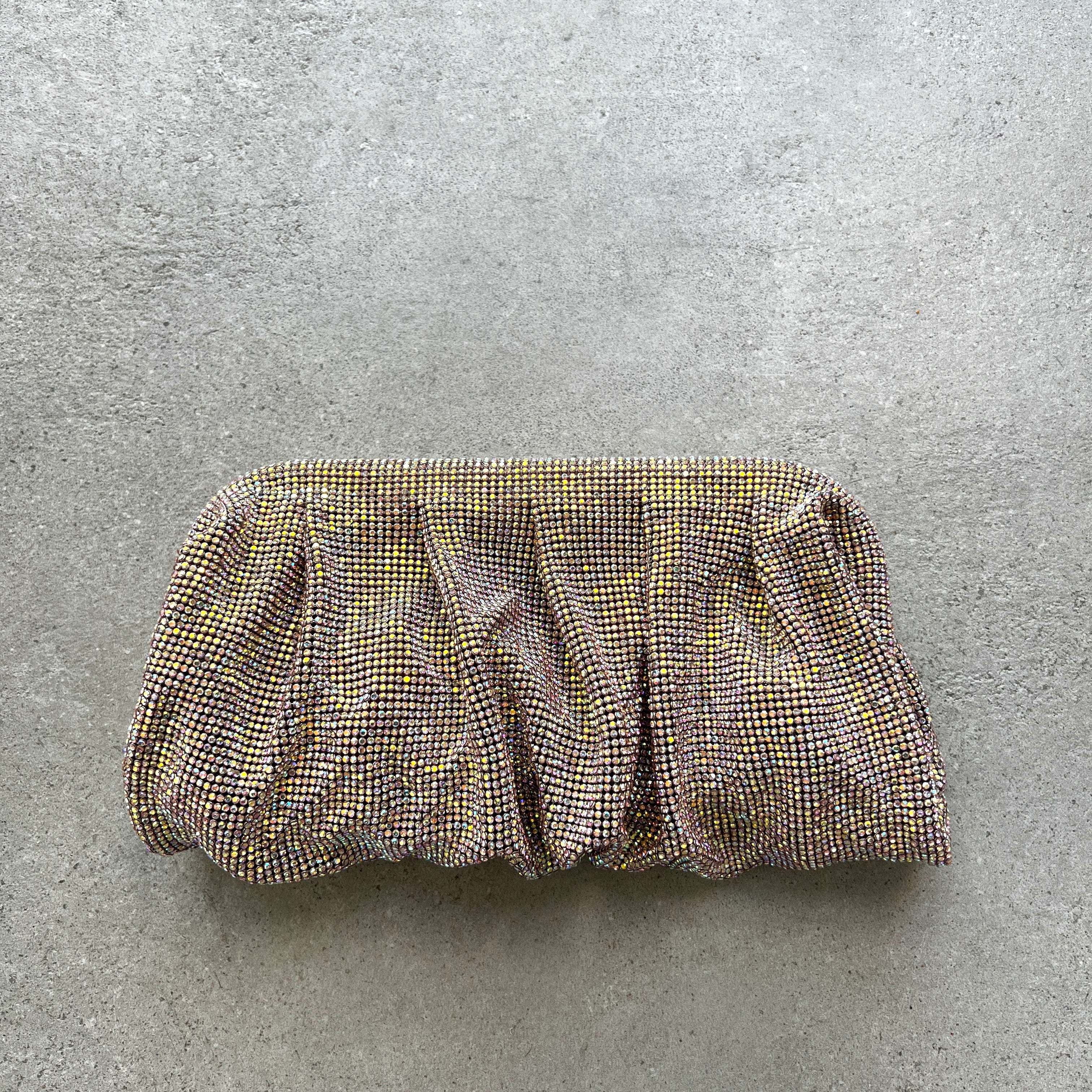External: 100% Aluminium mesh studded with crystal rhinestones
