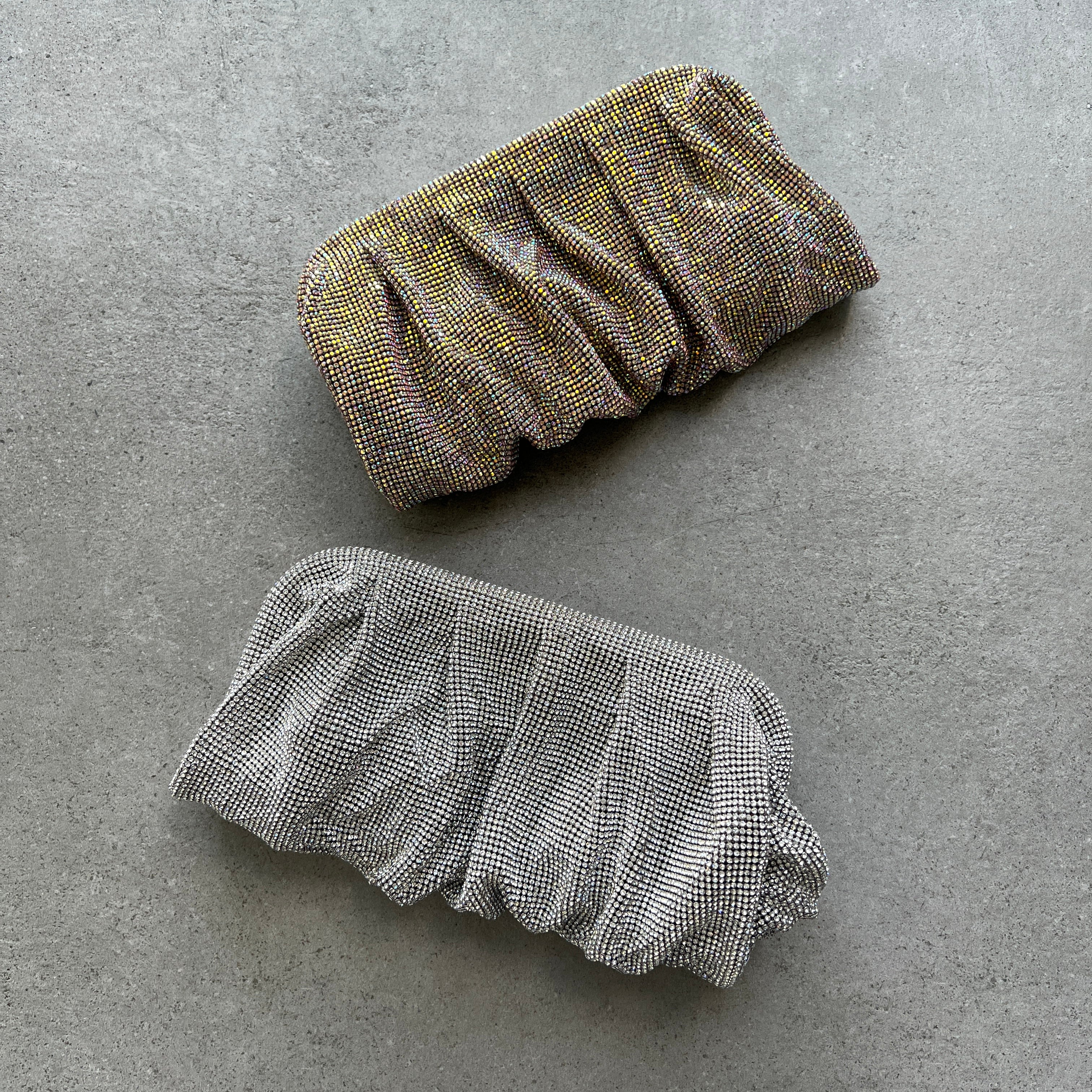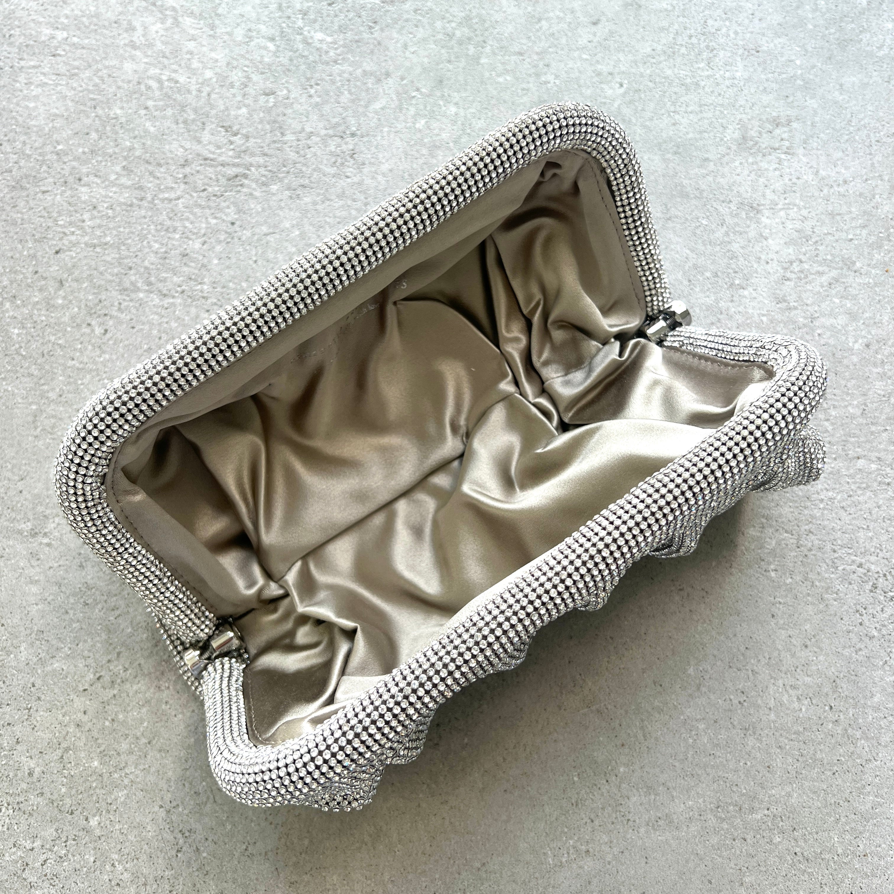 External: 100% Aluminium mesh studded with crystal rhinestones
