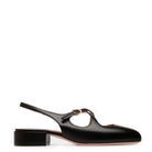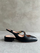 Inspired by an archival design, the Bally Ballyrina slingback pump reimagines classic ballet elegance with a modern twist. Crafted in smooth black leather, this sophisticated style blends the delicate lines of a strappy ballet shoe with the structure of a 40mm stacked heel. A discreet elastic section on the inner side ensures easy pull-on wear, enhancing comfort and convenience. The gold-tone metal buckle, engraved with the iconic Bally logo, adds a refined finishing touch. Reminiscent of pointe shoes, the cross-strap ribbon detailing brings graceful femininity to every step.