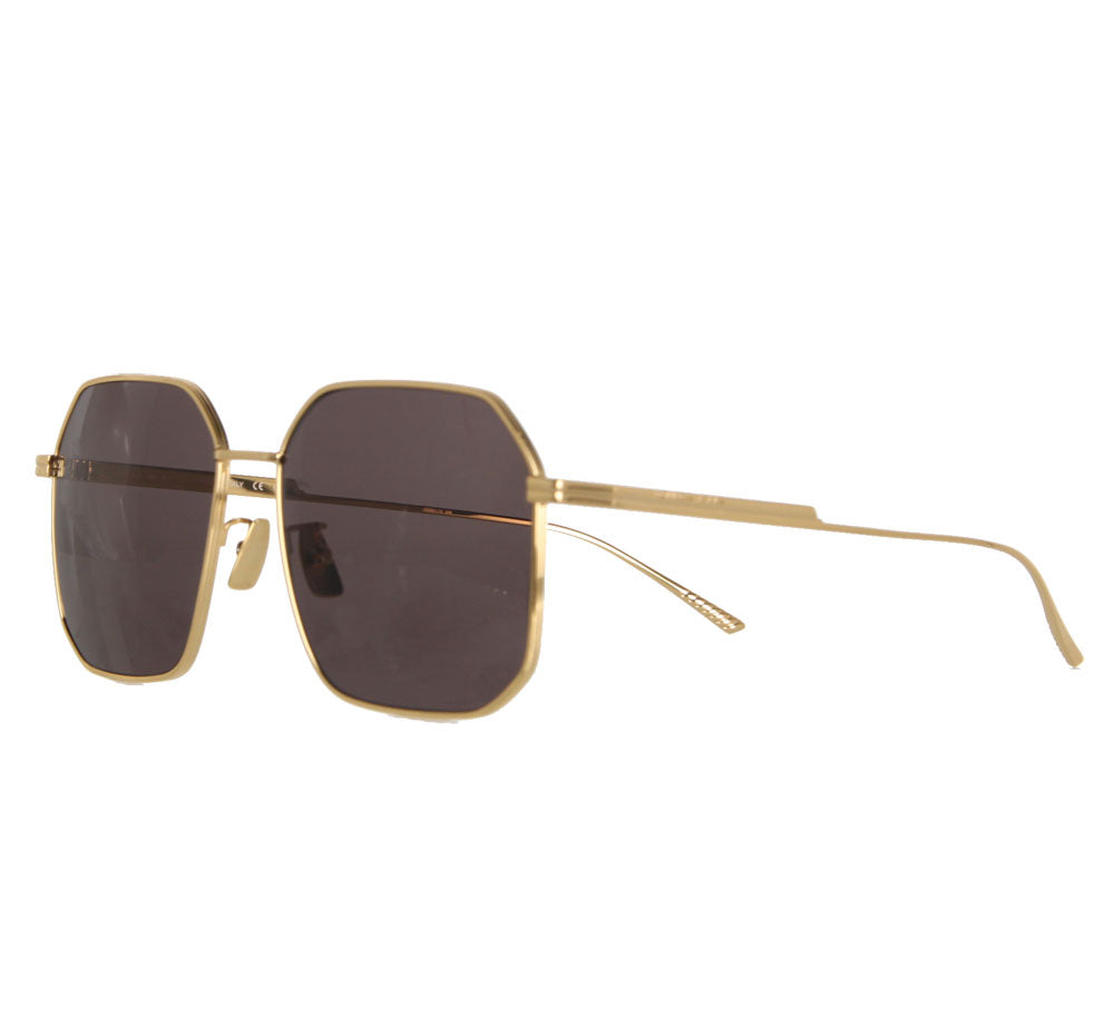 Angular aviator sunglasses with metal frames with signature ribbon detail on temples. Grey lens with gold frame finish.