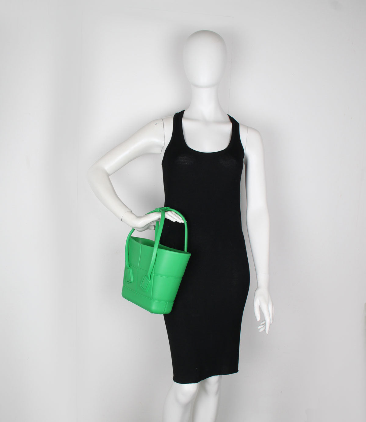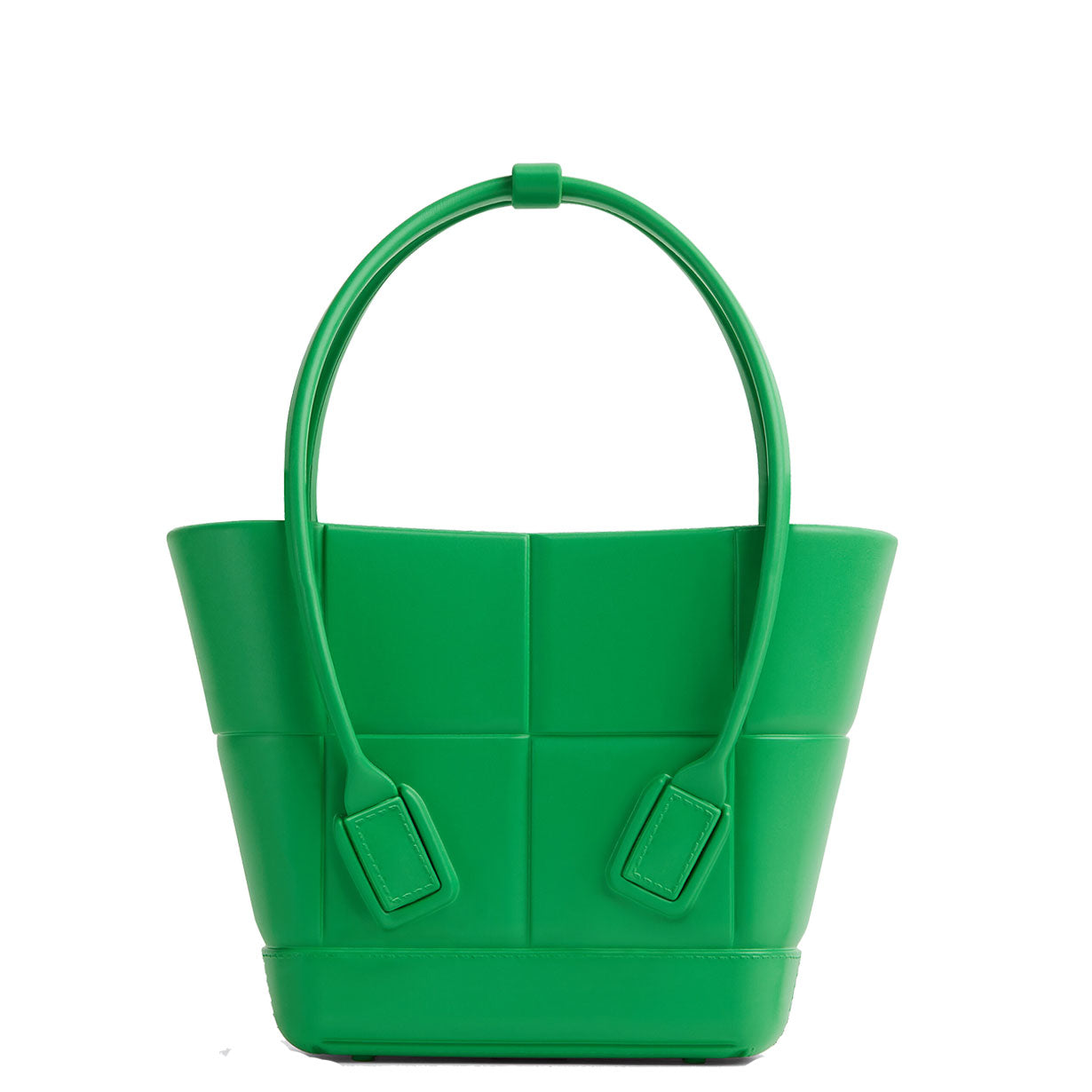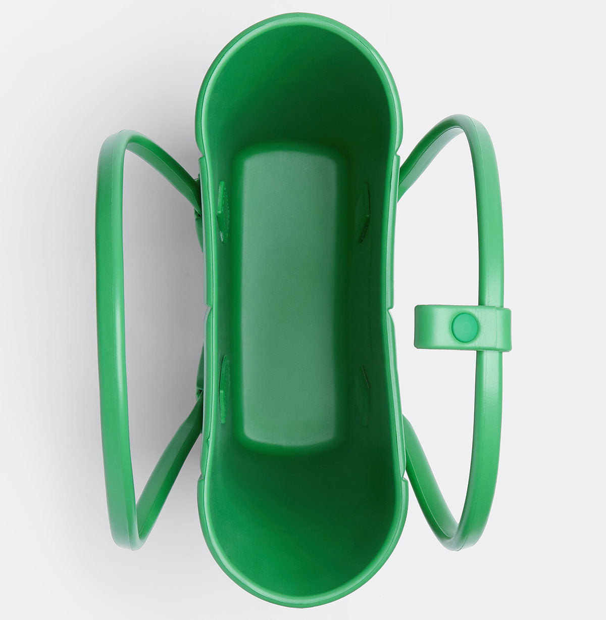 Bottega Veneta's signature intrecciato weave inspires the design of the Arco Rubber tote. It is crafted in Italy from durable matte rubber in a vibrant Grass green and is finished with a snap button fastening at the handles.