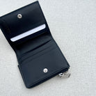 Bi-Fold Compact Wallet Zip Round , Black (S)