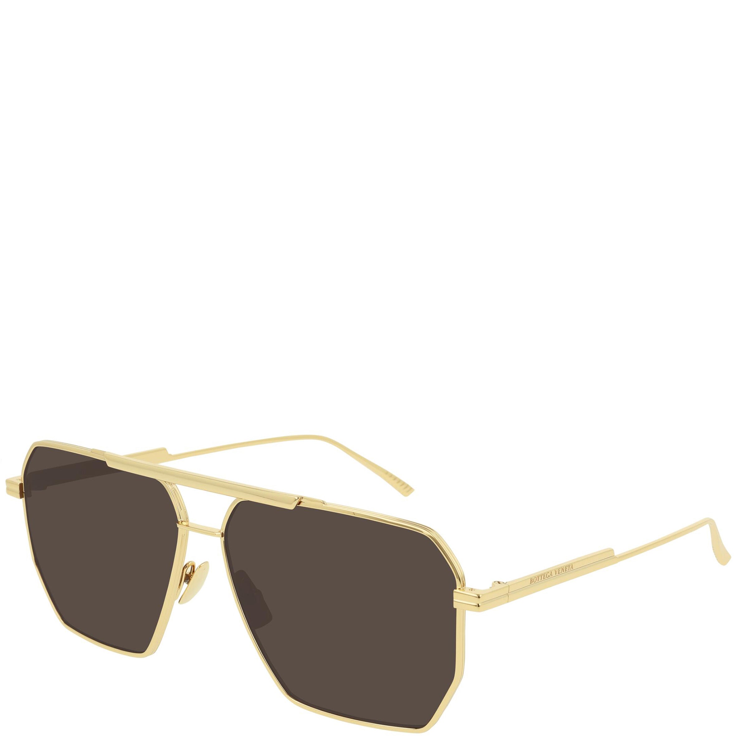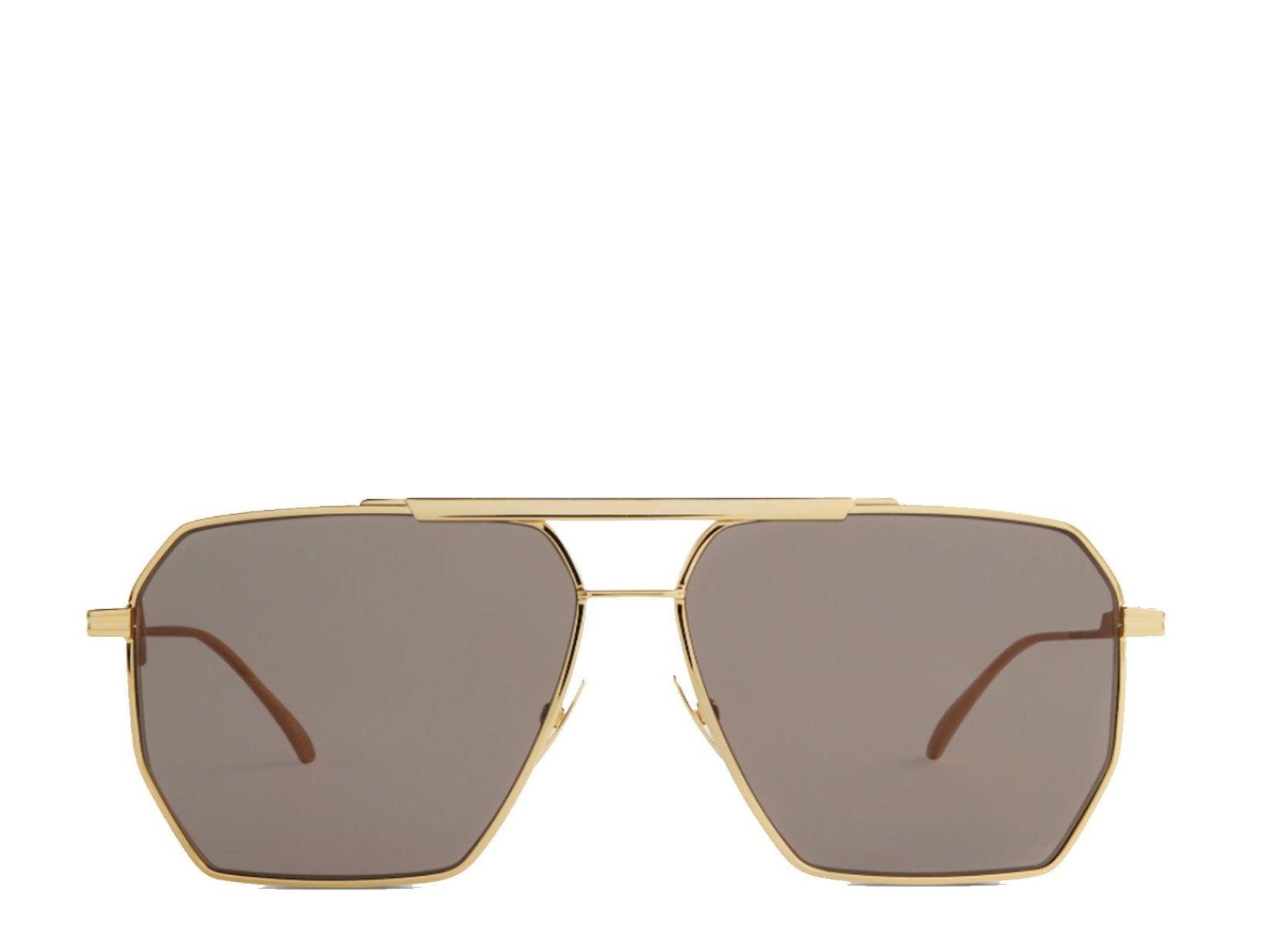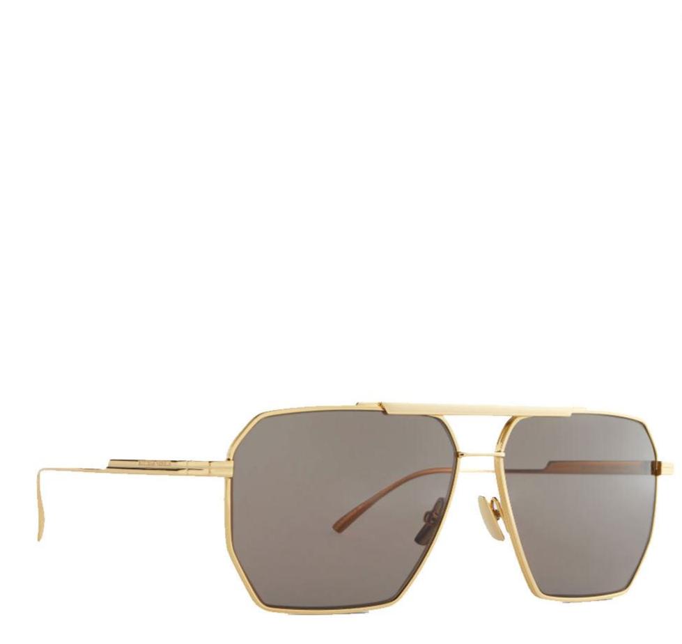 In a geometric aviator-inspired shape, these gold-tone metal sunglasses from Bottega Veneta have a double nose bridge, brown tinted lenses.