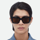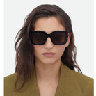 Oversized Square acetate Sunglasses with classic ribbon arm detail on tapered arms.