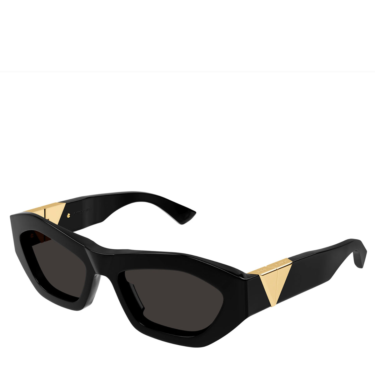 Full acetate feminine geometrical narrow style characterized by sharp and bold volumes. New triangular dedicated hinge in metal. Bottega Veneta logo on the top of the hinge.
