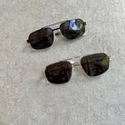 Metal pilot sunglasses. Silicone covered nose pads and arm ends for extra comfort. Full metal unisex narrow caravan shape. Endpiece embellished by the iconic Lock detail, inspired by the metal latch of the bags. Super light full metal temples with logo on top. Transparent rubber endtips.