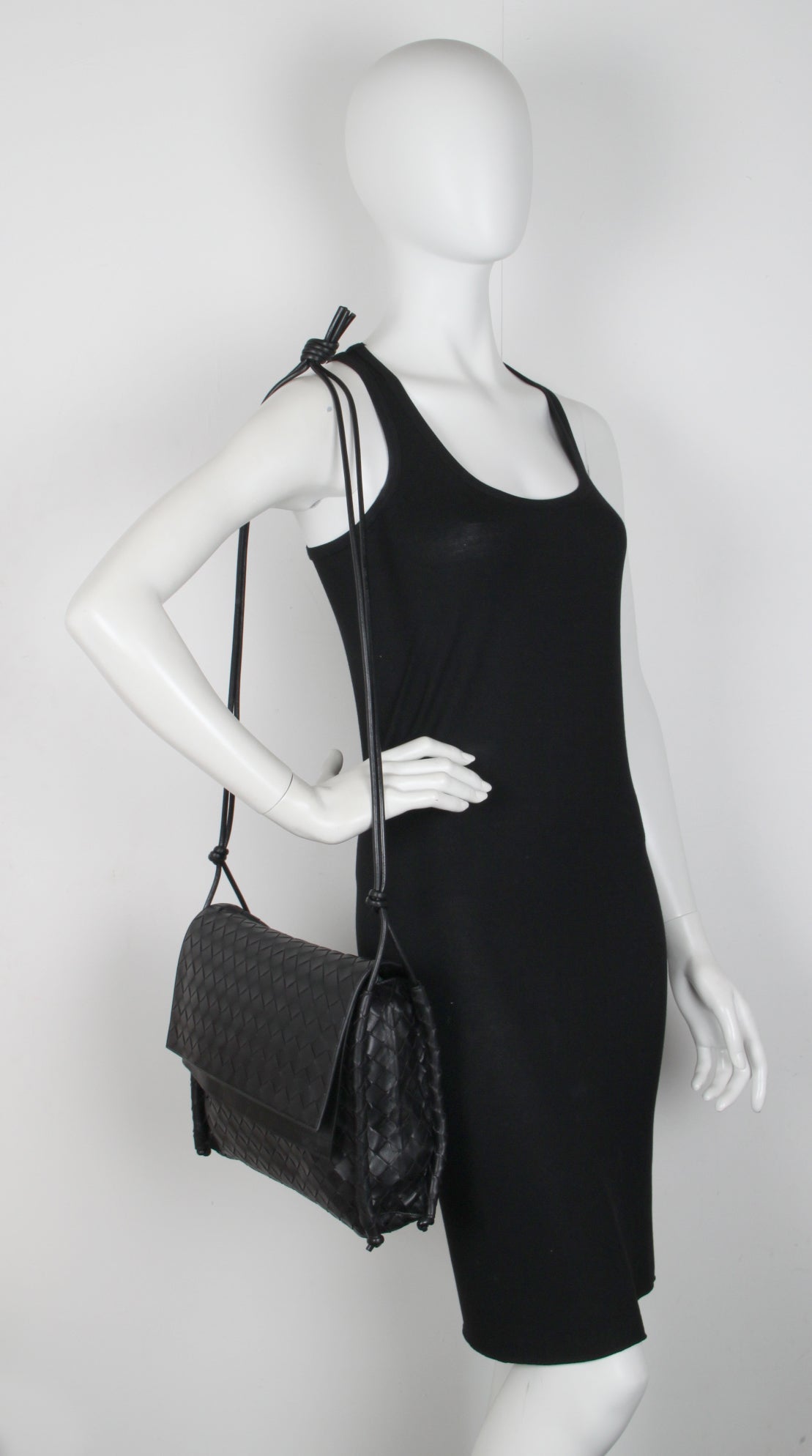 A soft crossbody bag with a double flap closure which can fold over the exterior or inside for a boxy shape. Finished with a knotted adjustable leather strap and lined with calfskin leather.