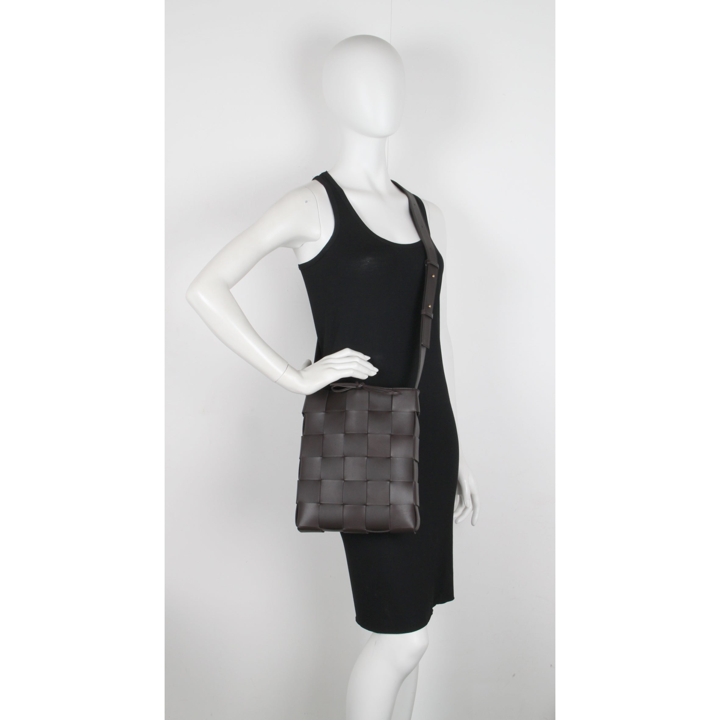 Messenger bag in Intrecciato Nappa leather. Features an interior zipped pocket, an adjustable shoulder strap which can be worn crossbody or over the shoulder, unpainted edges for a natural finish, and leather string fastening. Interior is unlined.