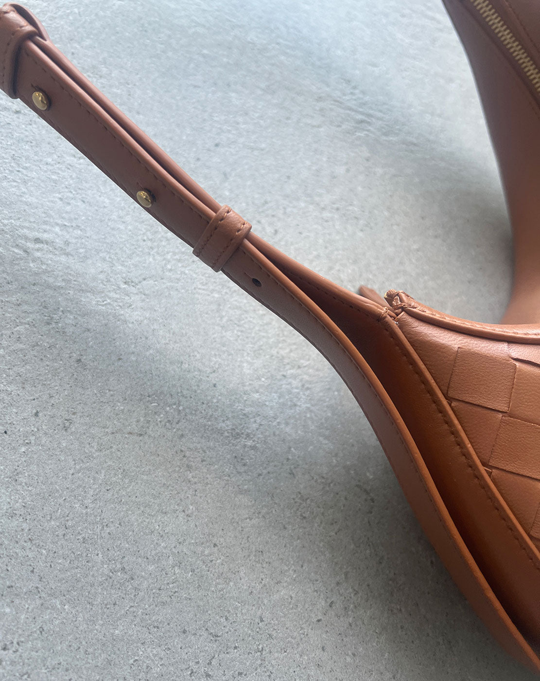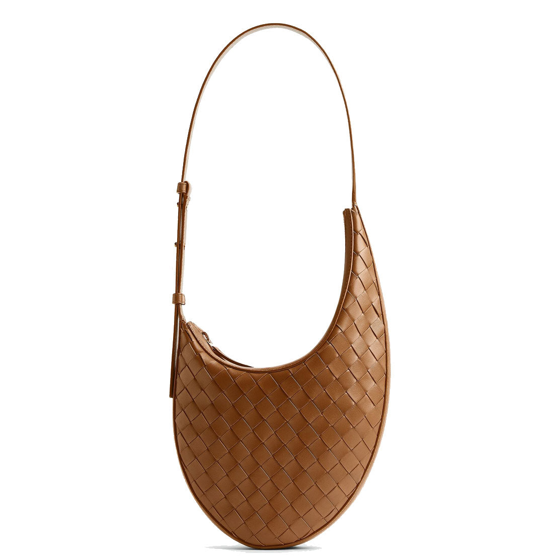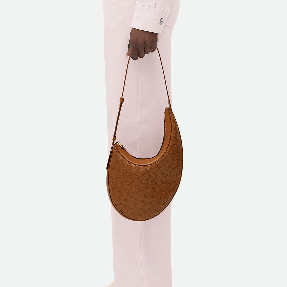 Shoulder bag with sculptural silhouette crafted from Intrecciato leather featuring