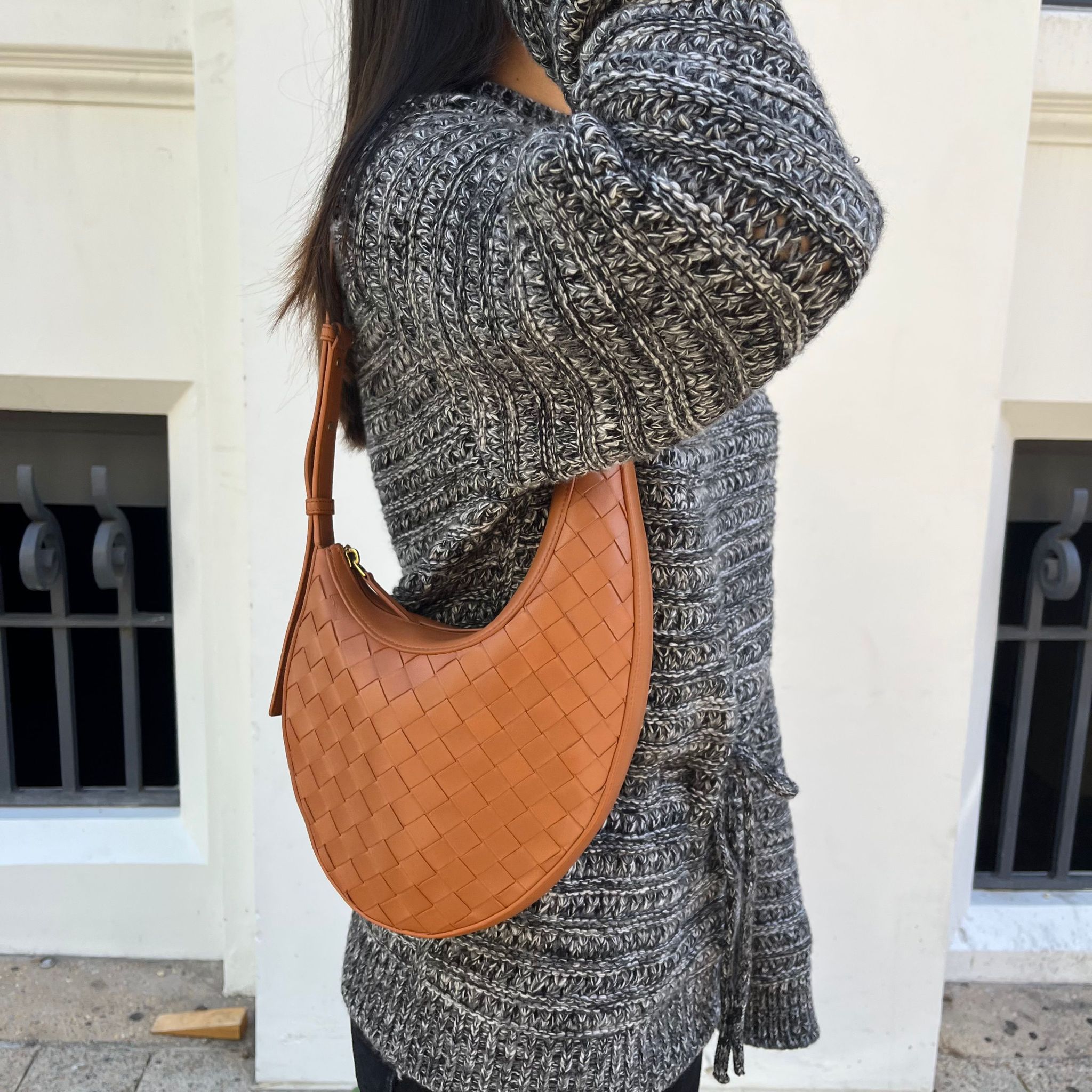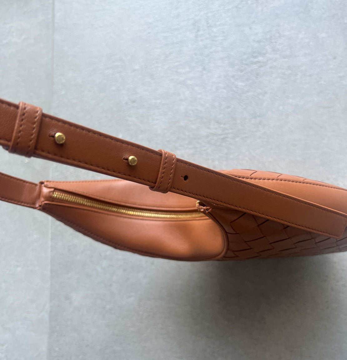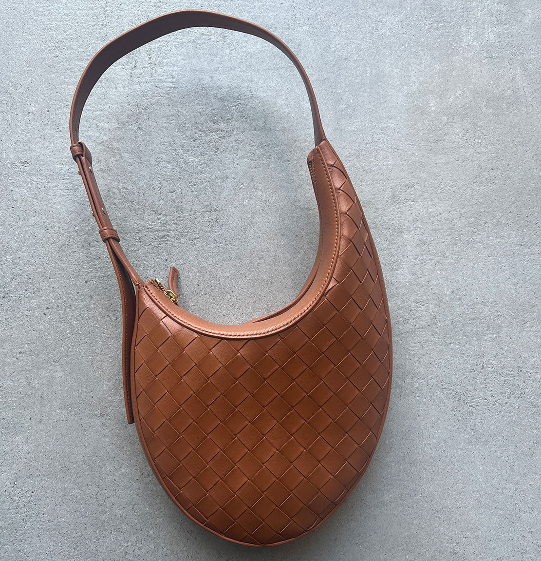 Shoulder bag with sculptural silhouette crafted from Intrecciato leather featuring
