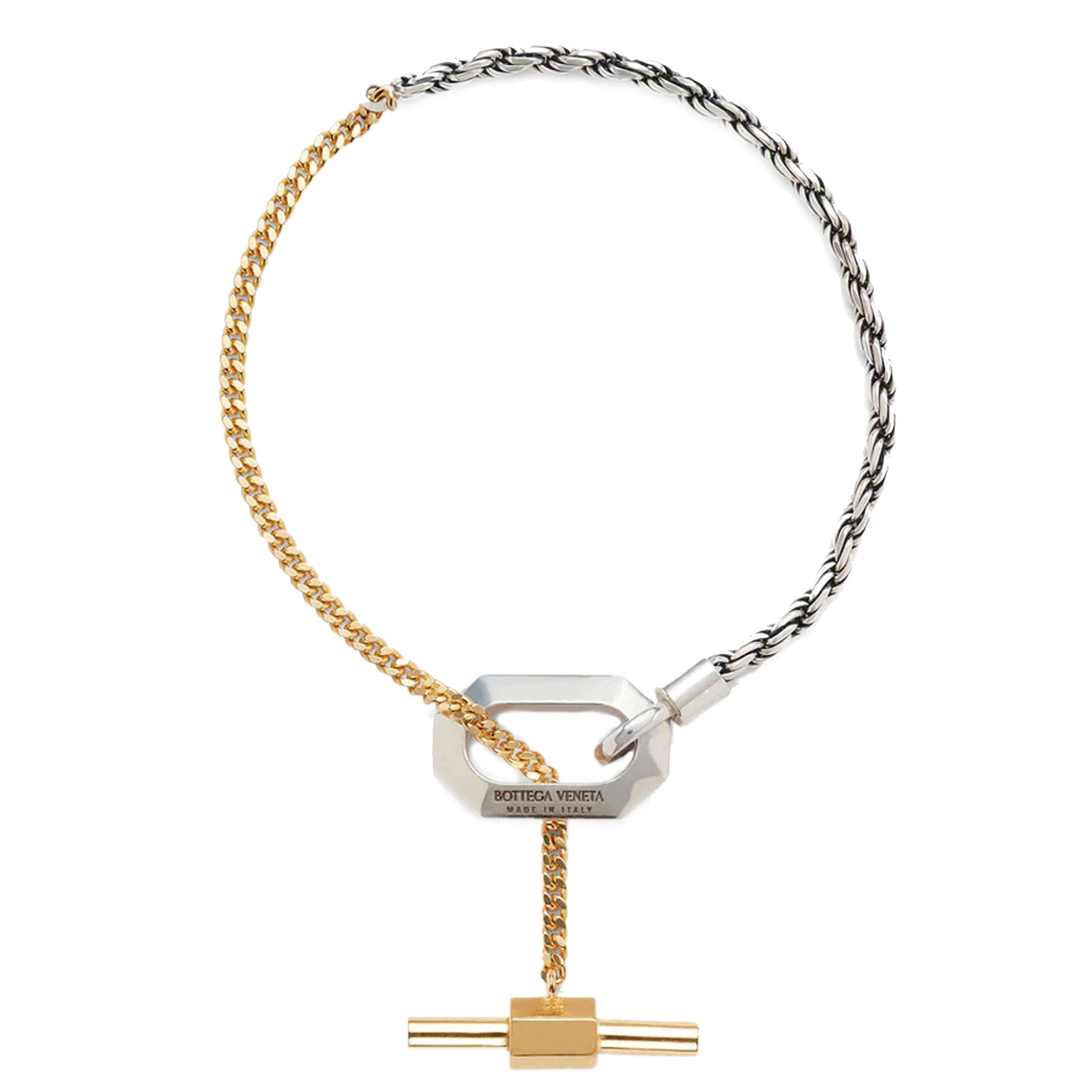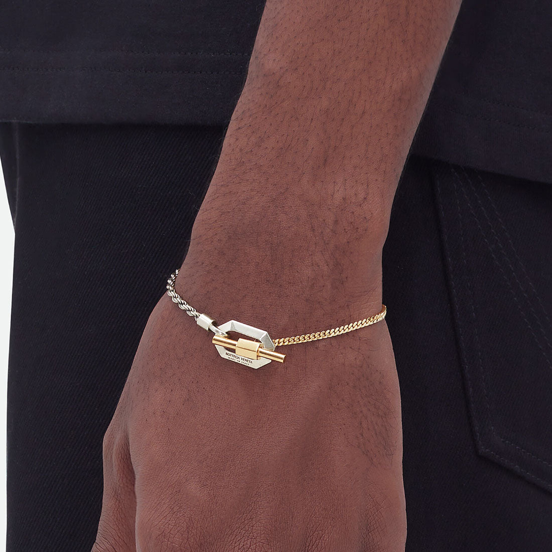 18-karat gold-plated silver and silver chain bracelet. T-bar closure.