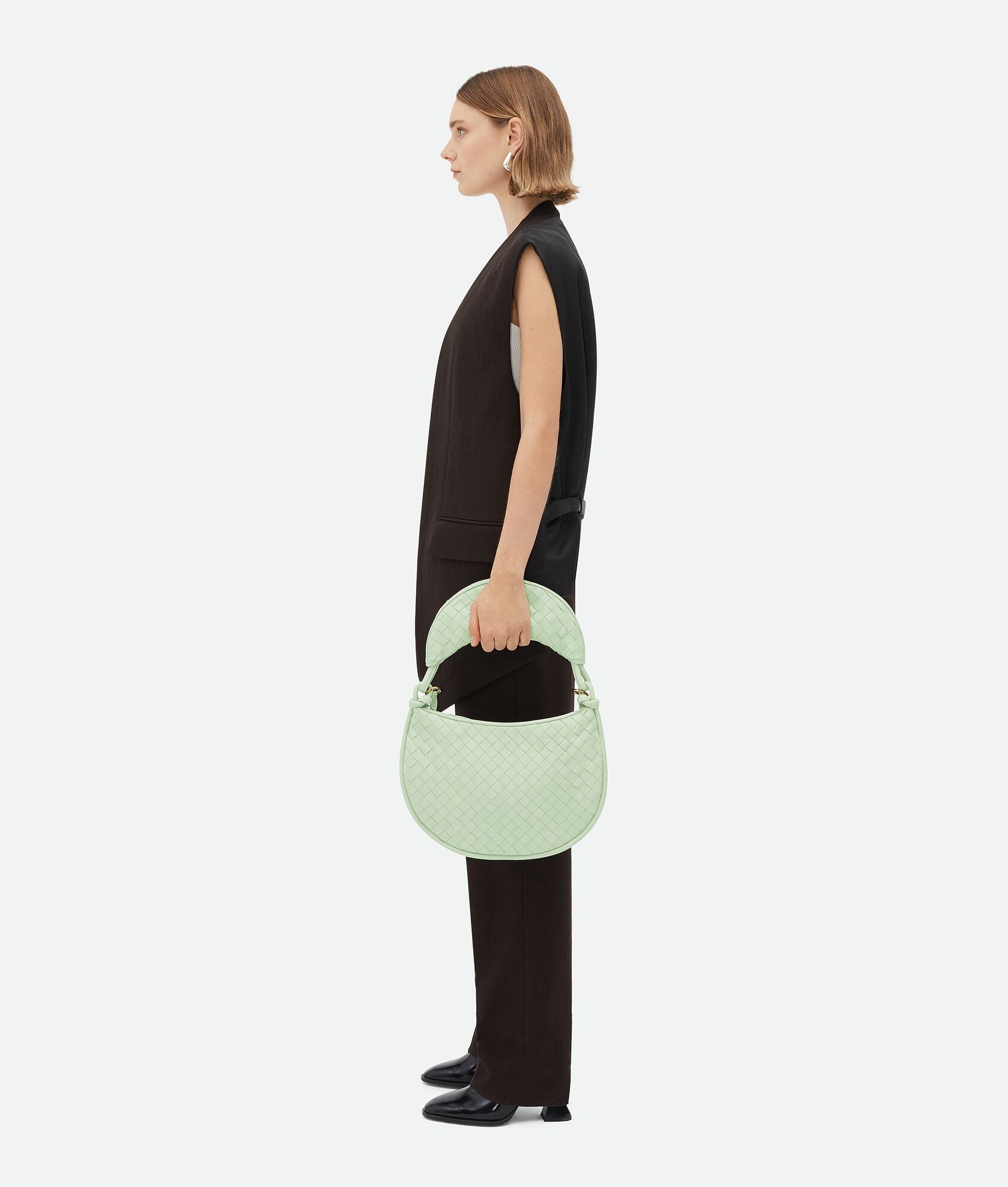 Shoulder bag realised with Intrecciato craftsmanship in supple lambskin leather with