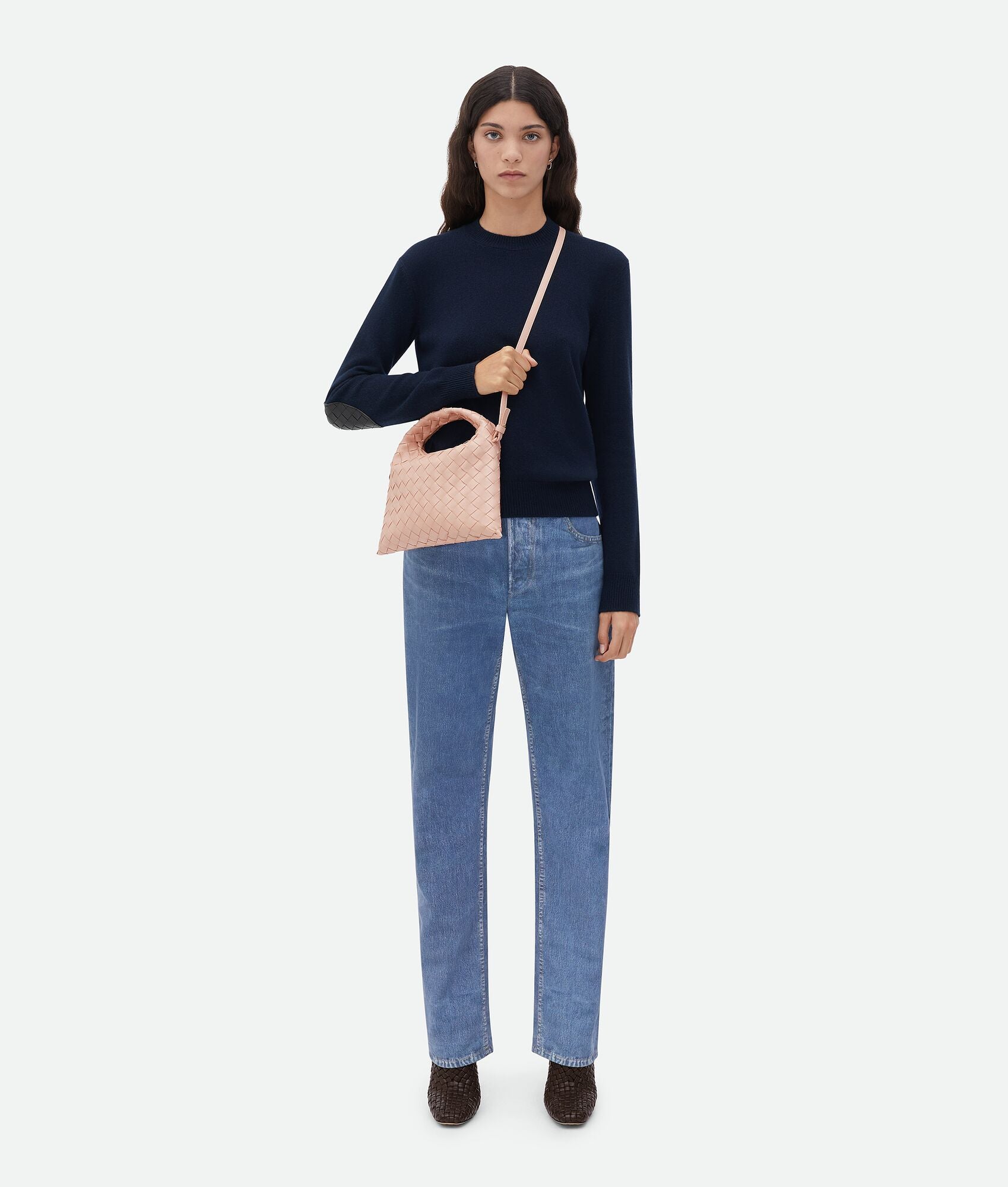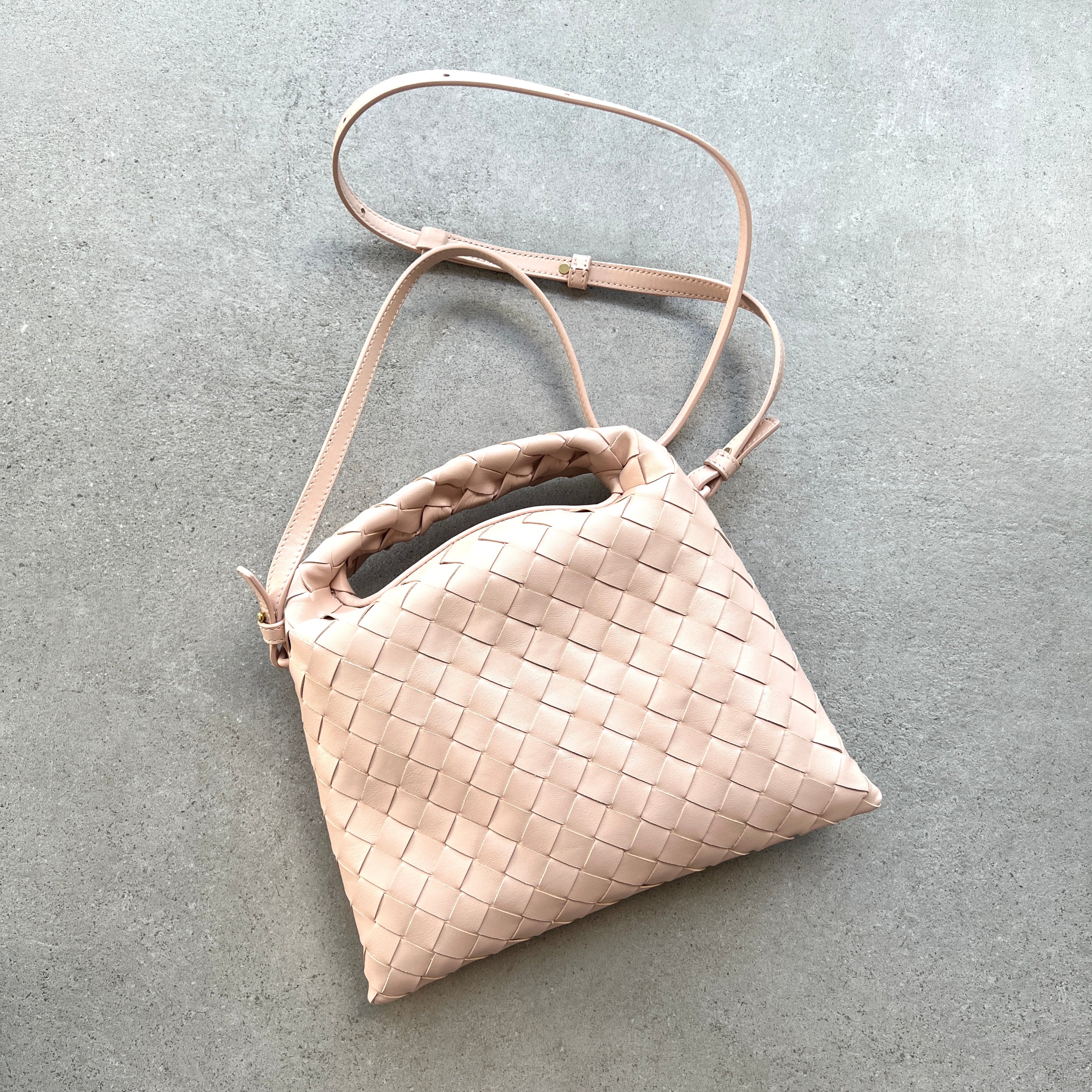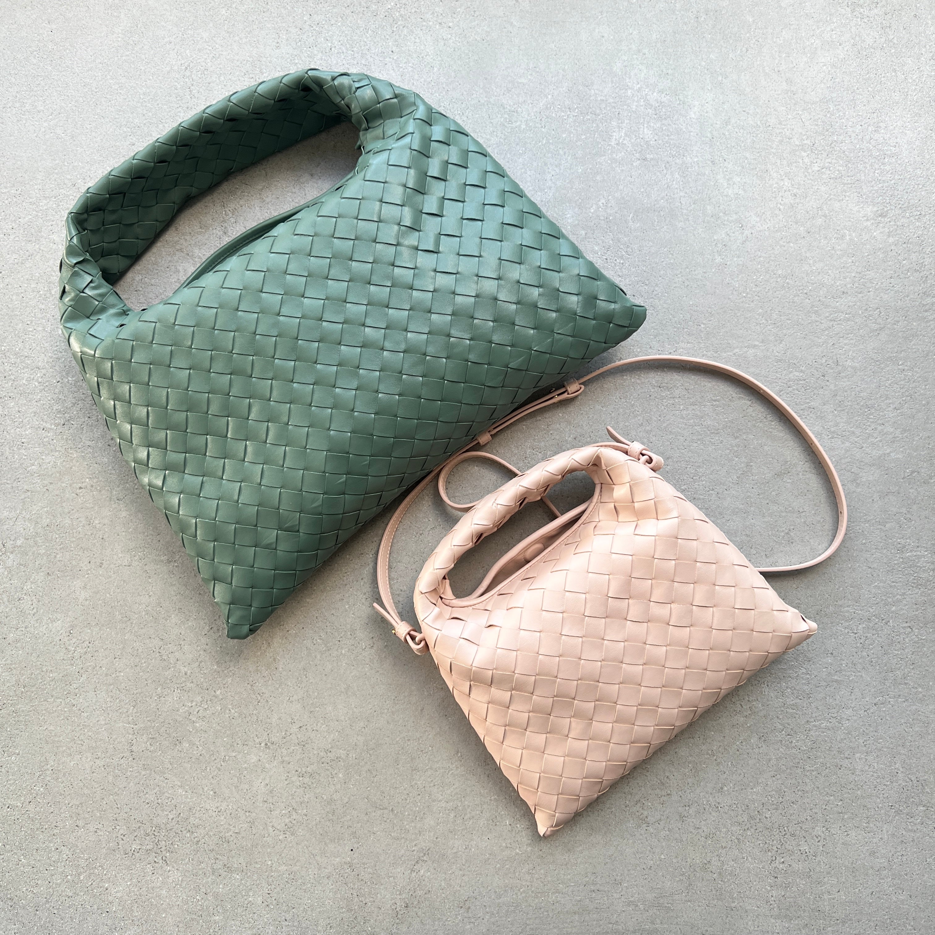 Mini Intrecciato leather crossbody bag. The latest to the Hop family, the new mini size has a detachable and adjustable cross-body long leather strap. A little tall and wider than the Mini Jodie, this is a great day to night option.