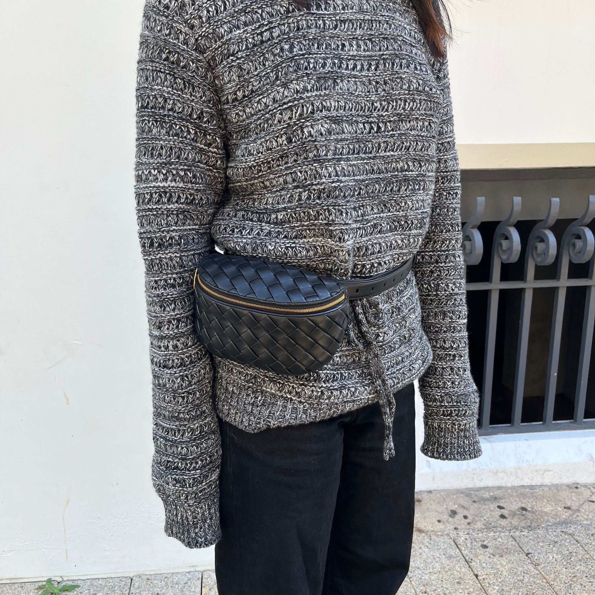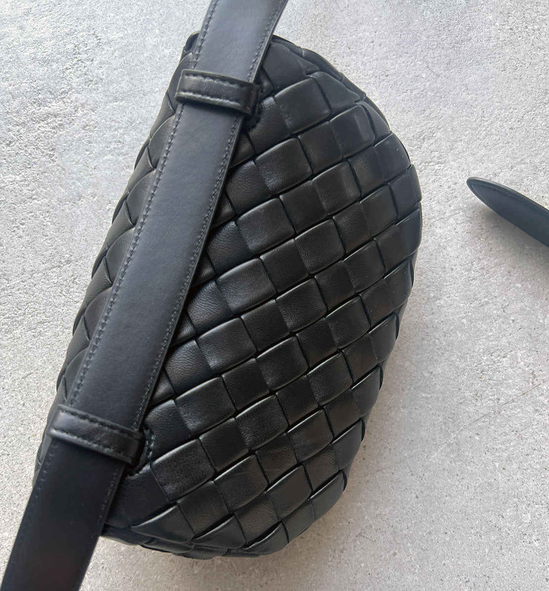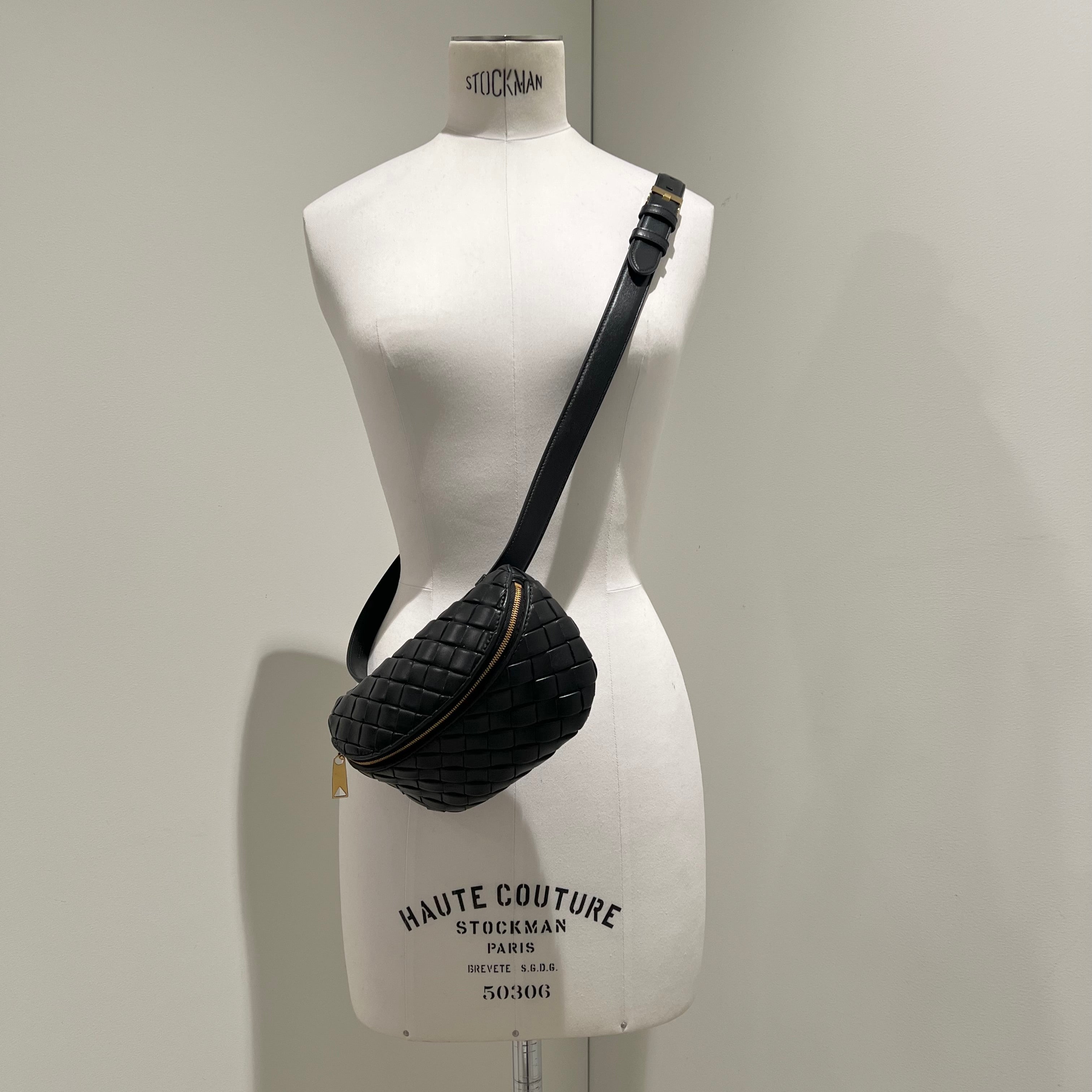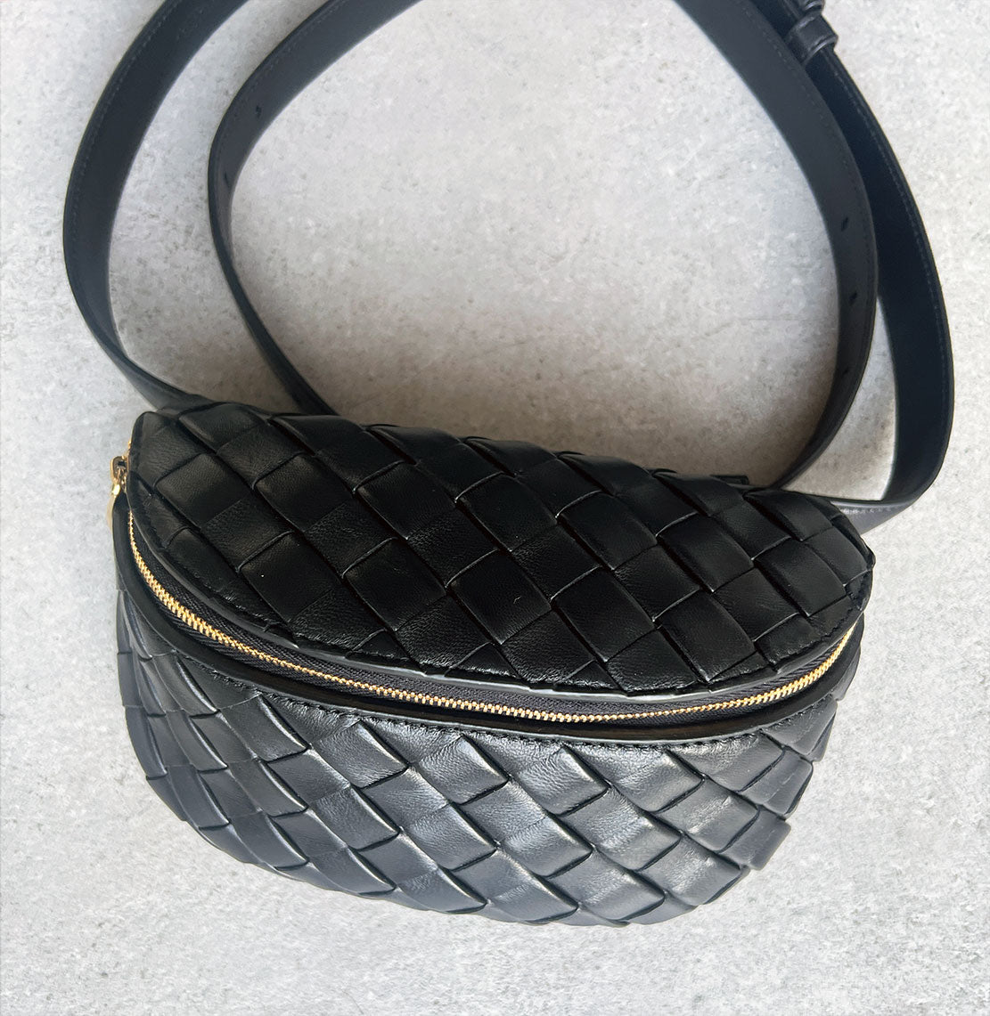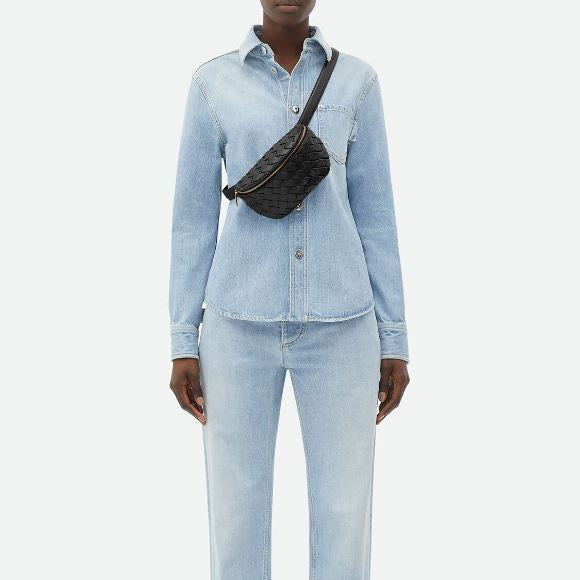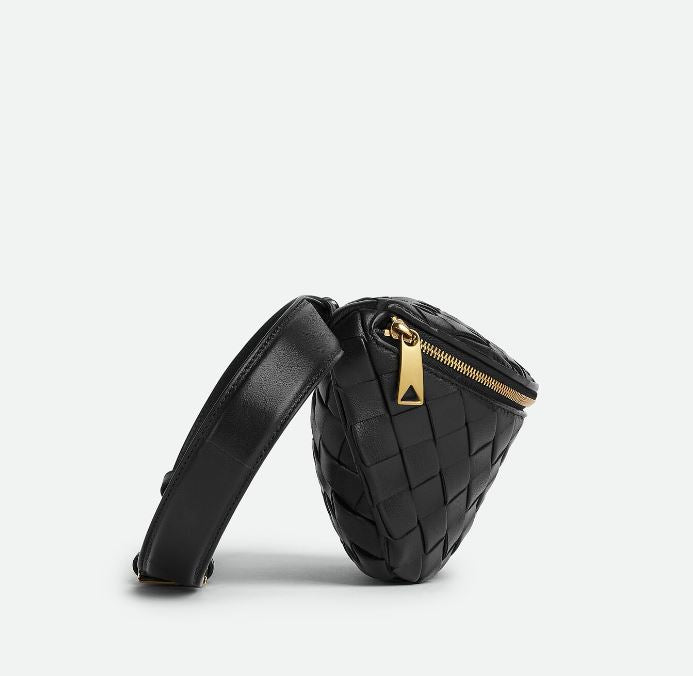 Intrecciato Padded Belt Bag, Black (G)