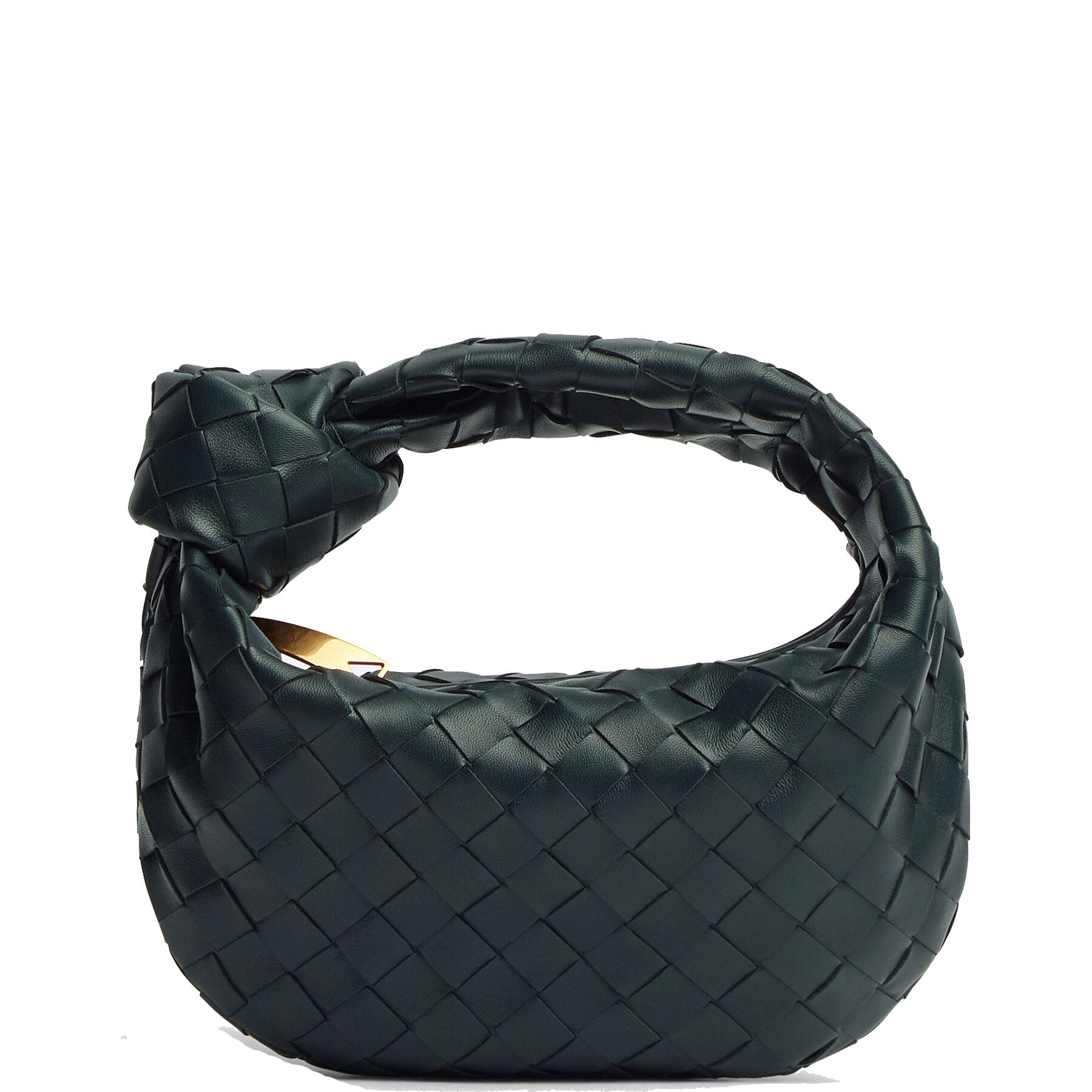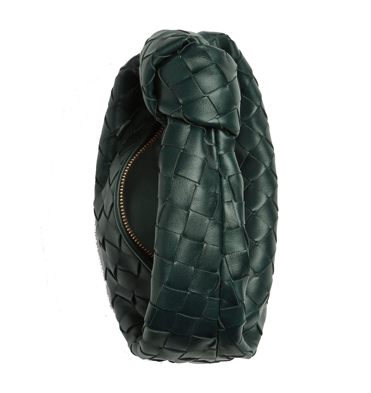 This mini BV Jodie bag is named after actress Jodie Foster. The round mini hobo bag is woven using the iconic Intrecciato technique in supple leather and finished with a single knotted strap and a curved antiqued gold-tone metal zip. Lined in smooth calfskin.