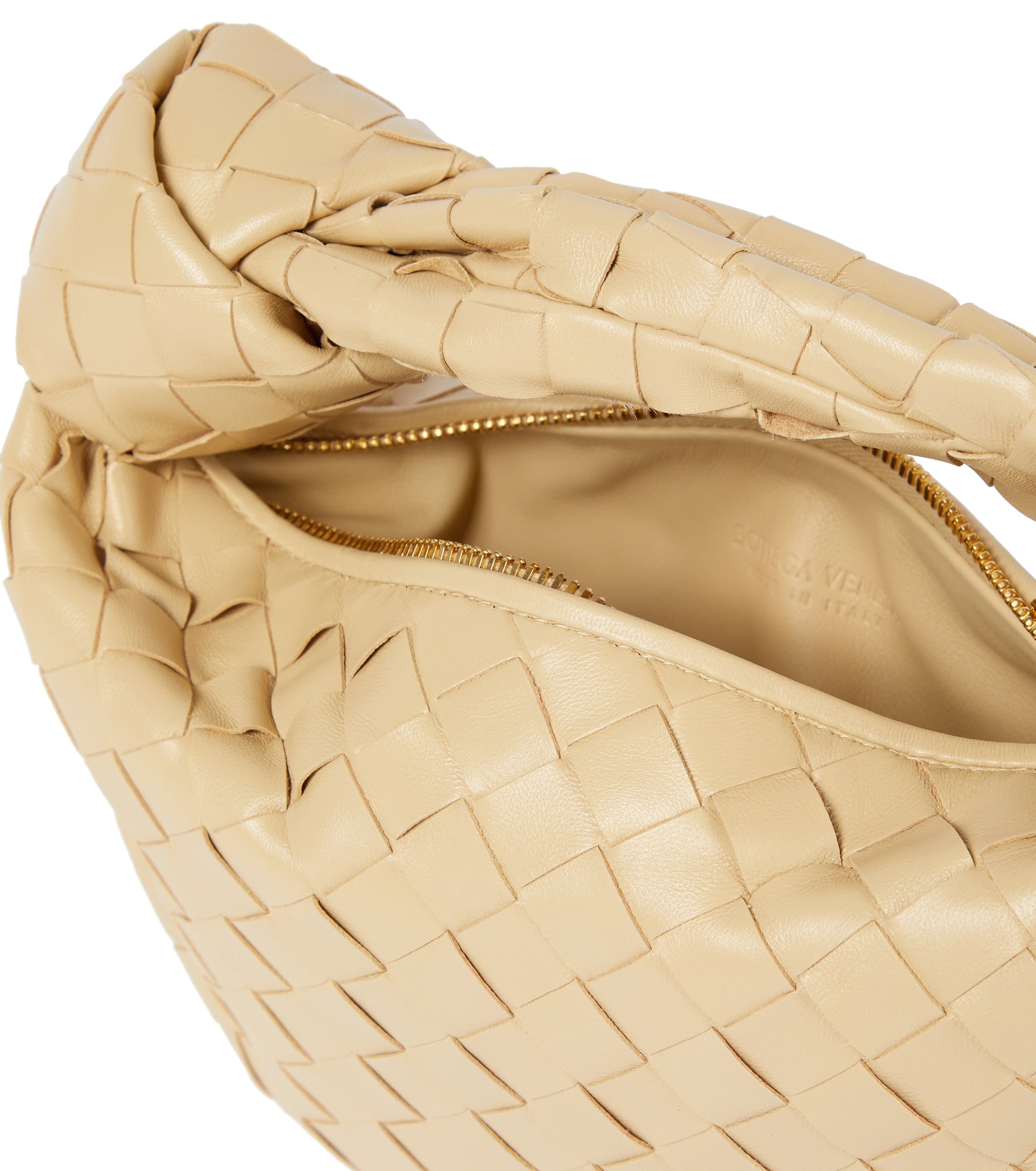 This mini BV Jodie bag is named after actress Jodie Foster. The round mini hobo bag is woven using the iconic Intrecciato technique in supple leather and finished with a single knotted strap and a curved antiqued gold-tone metal zip. Lined in smooth calfskin.