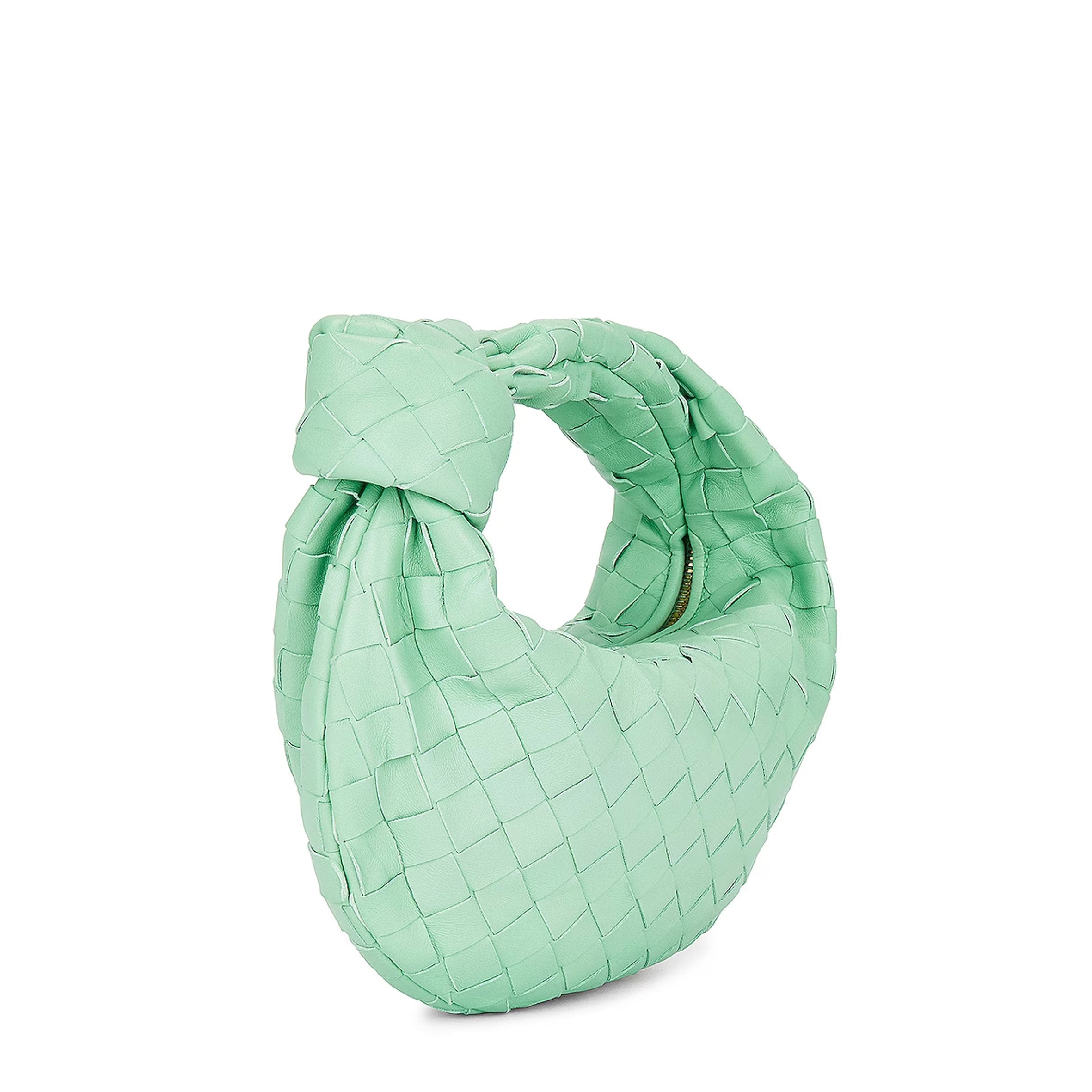 This mini BV Jodie bag is named after actress Jodie Foster. The round mini hobo bag is woven using the iconic Intrecciato technique in supple leather and finished with a single knotted strap and a curved antiqued gold-tone metal zip. Lined in smooth calfskin.