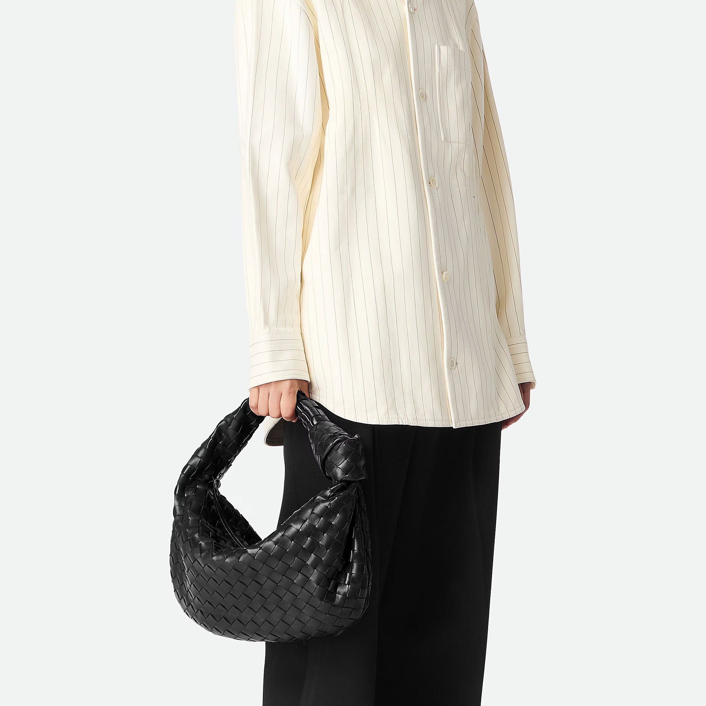 The Teen BV Jodie bag is now renamed as the small. The round mini hobo bag is woven using the iconic Intrecciato technique in supple leather and finished with a single knotted strap and a curved cilver-tone metal zip. Lined in smooth calfskin.