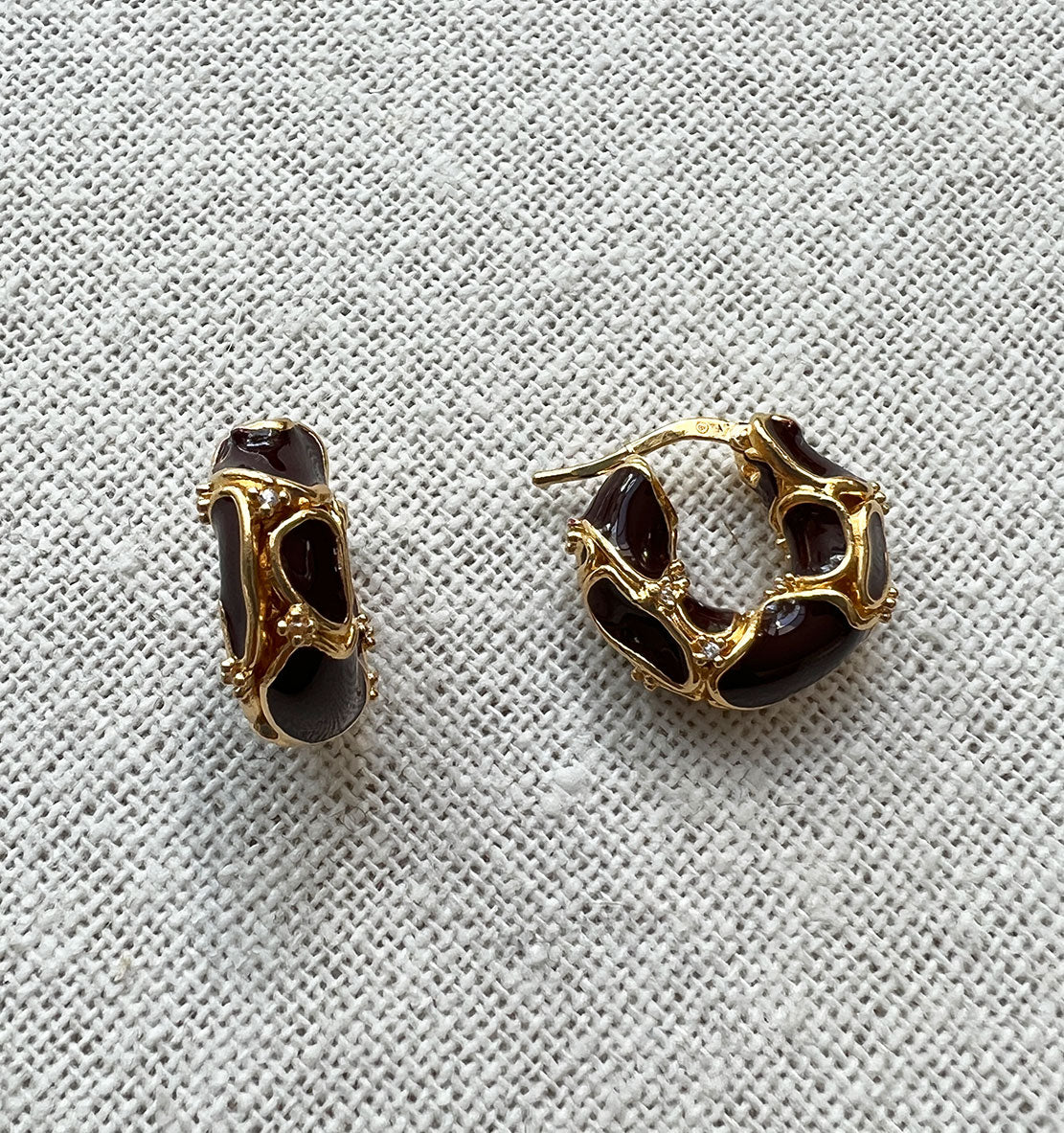 Hand-enamelled 18k gold-finish sterling silver and cubic zirconia hoop earrings