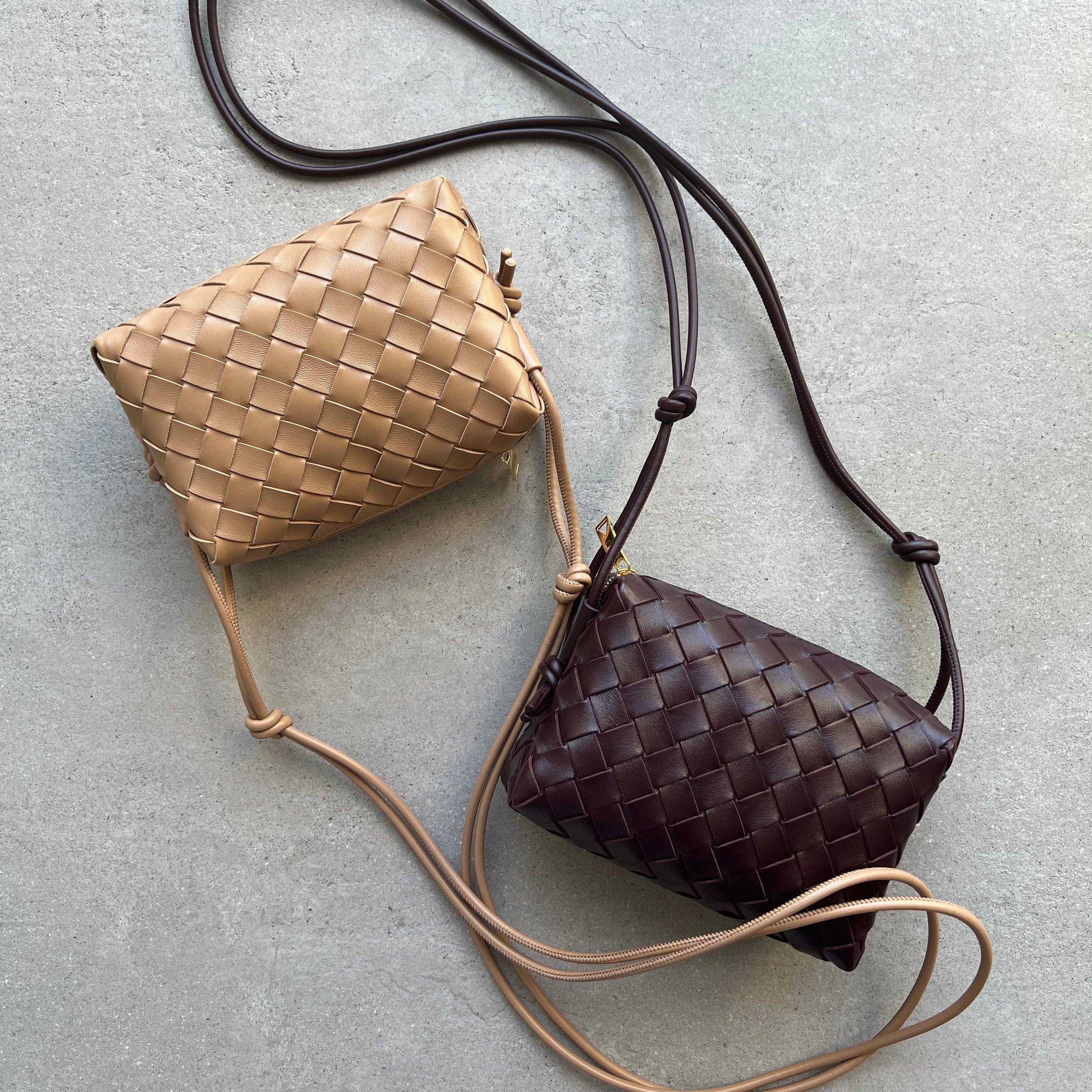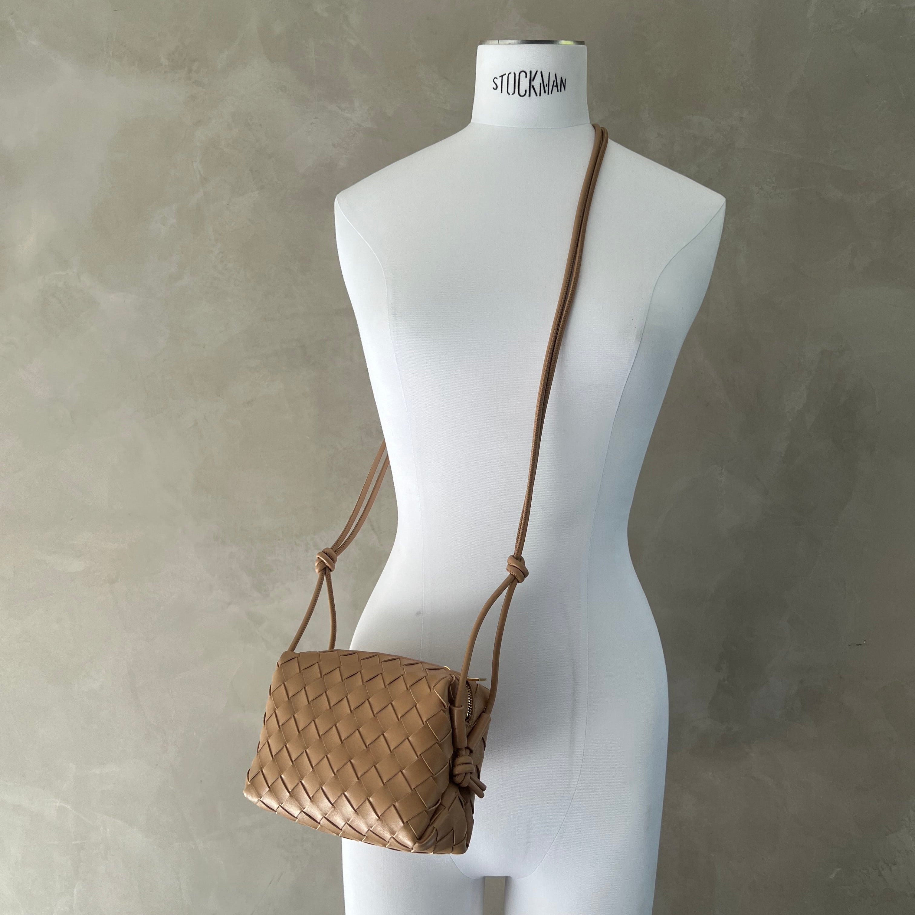 Bottega Veneta's Loop Mini bag is woven in the designers distinguishable intrecciato weave. This crossbody bag has a soft edge boxy shape crafted from lamb leather and features double knotted side details on the strap, zip top closure and internal leather lining with one slot pocket.