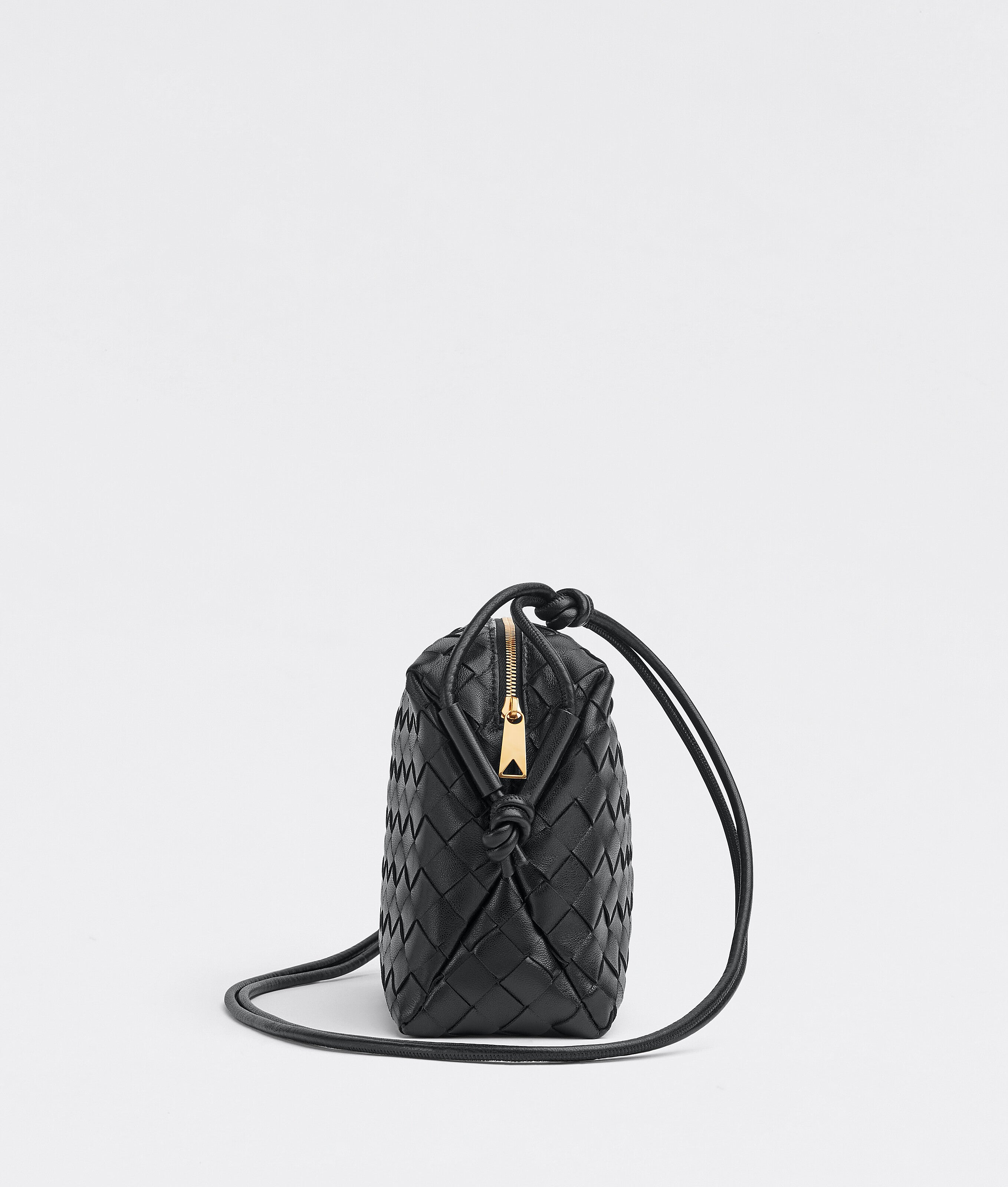 Bottega Veneta's Loop Small bag is woven in the designers distinguishable intrecciato weave. This crossbody bag has a soft edge boxy shape crafted from lamb leather and features double knotted side details on the strap, zip top closure and internal suede (unlined).