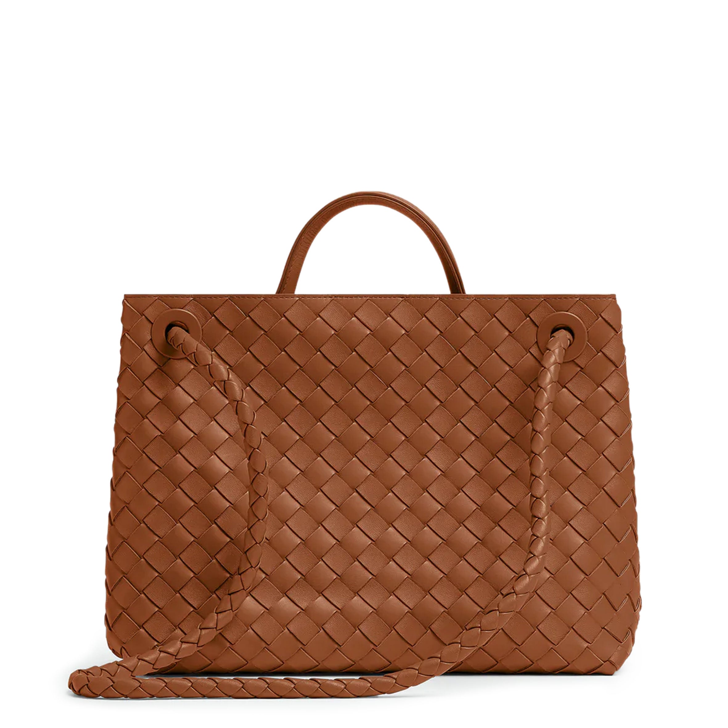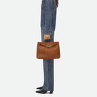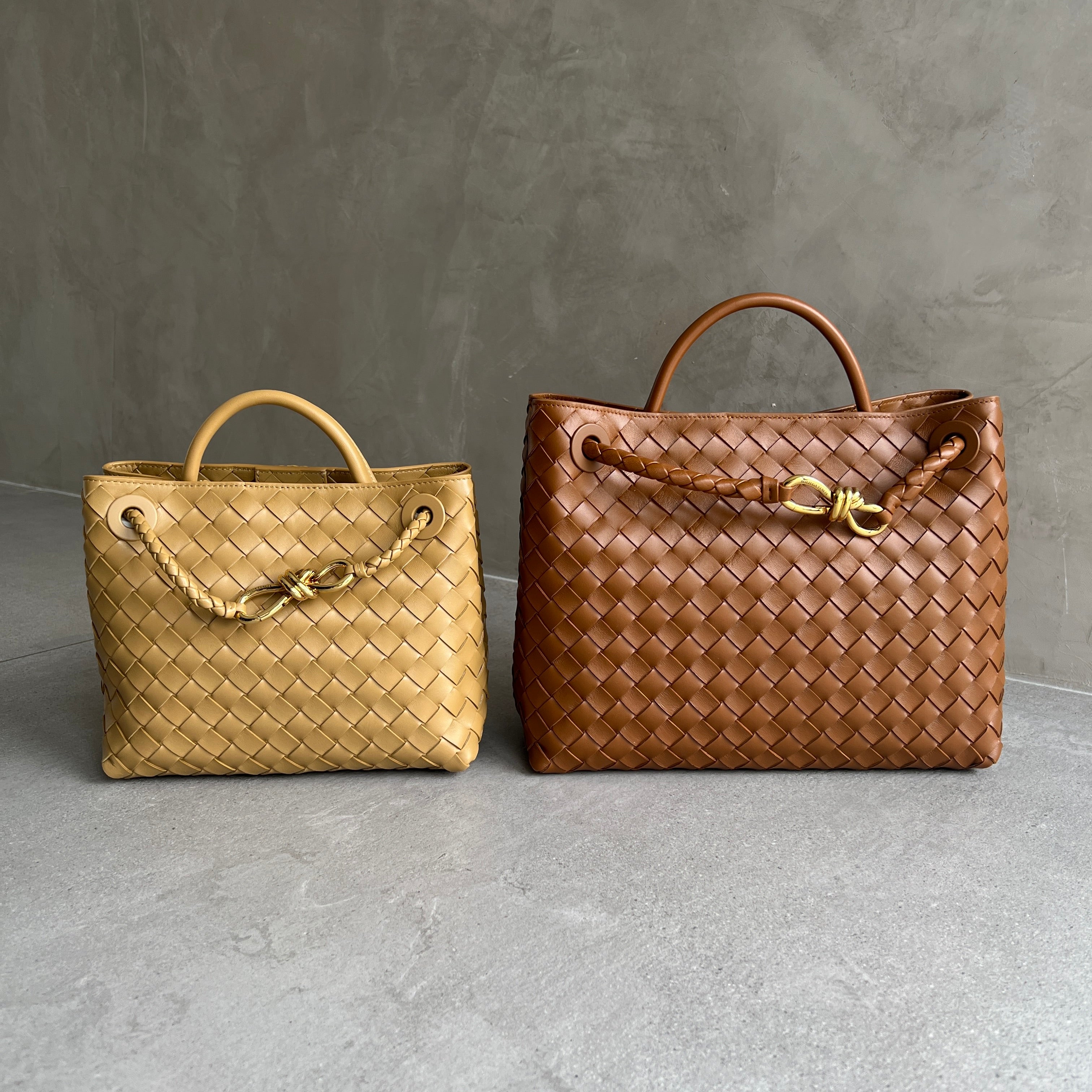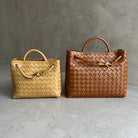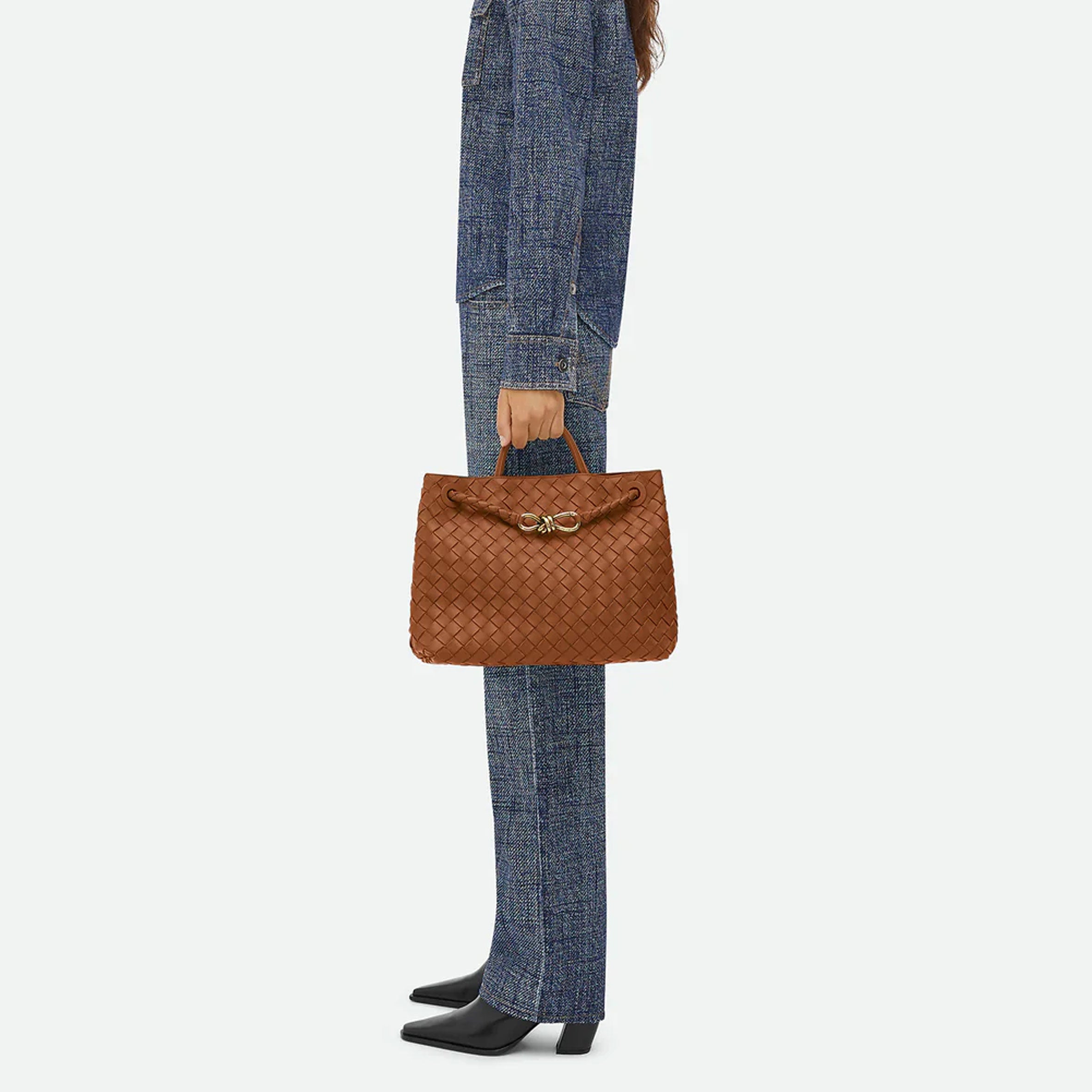 Andiamo is a new expression of the signature Intrecciato weave realised by the expert craftsmanship of artisans in the house’s atelier. Its name, Andiamo, “Let’s go” in Italian, embodies the spirit of the bag, a tribute to going places and the concept of craft in motion. The bag features a timeless Intrecciato silhouette woven by hand. A metal knot adorns and fastens its sliding braided straps, allowing it to be adjusted over the shoulder or across the body, giving the bag a soft tapered volume.