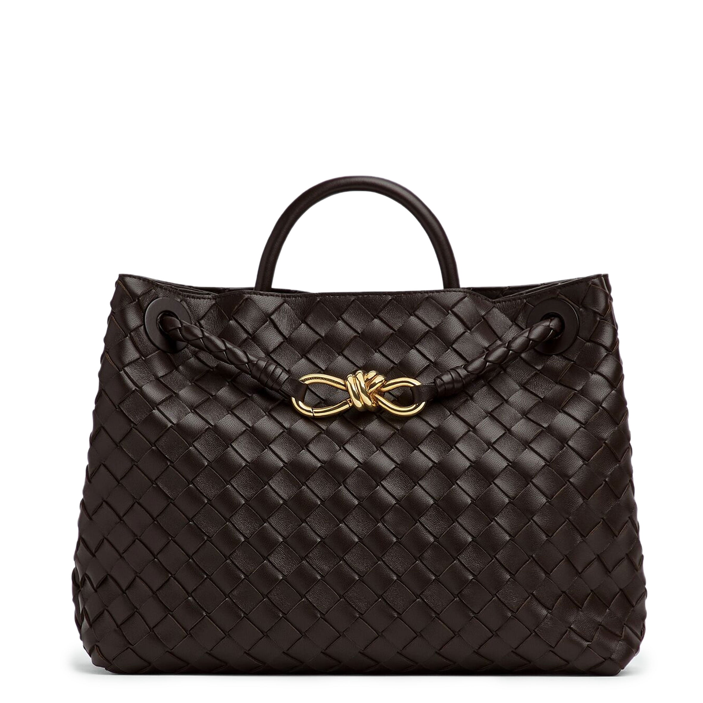 Andiamo is a new expression of the signature Intrecciato weave realised by the expert craftsmanship of artisans in the house’s atelier. Its name, Andiamo, “Let’s go” in Italian, embodies the spirit of the bag, a tribute to going places and the concept of craft in motion. The bag features a timeless Intrecciato silhouette woven by hand. A metal knot adorns and fastens its sliding braided straps, allowing it to be adjusted over the shoulder or across the body, giving the bag a soft tapered volume.