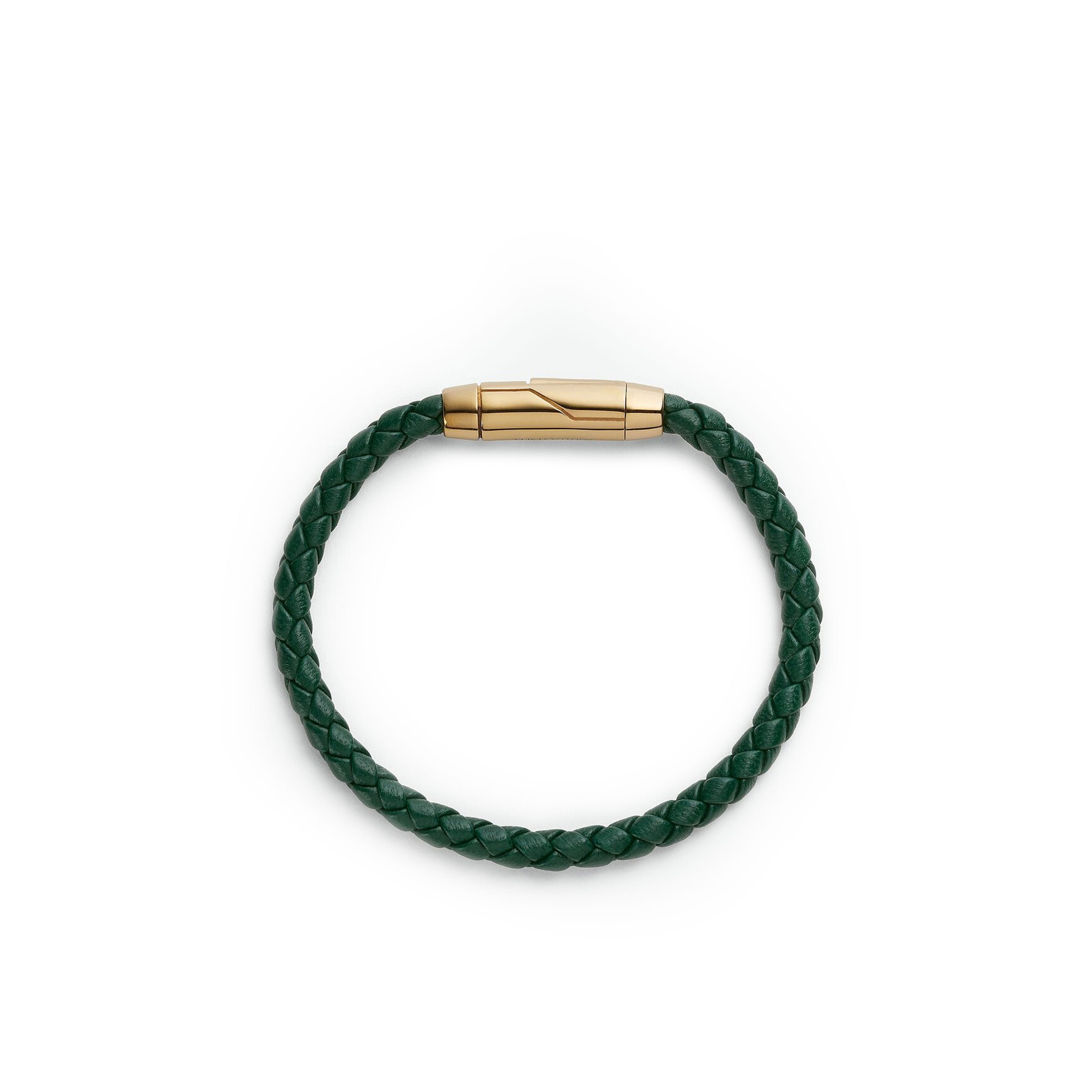 Bracelet crafted from braided leather recalling signature Intrecciato craftsmanship.