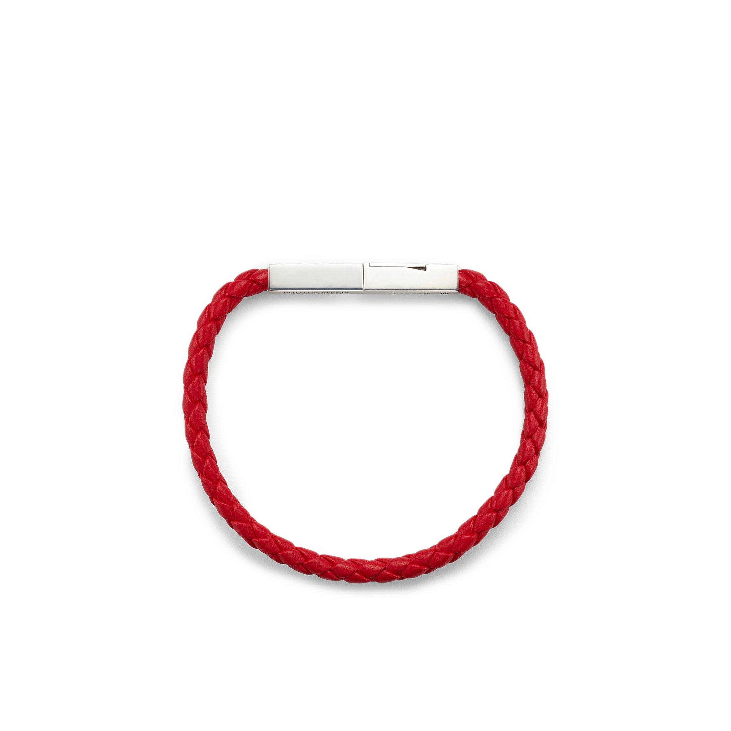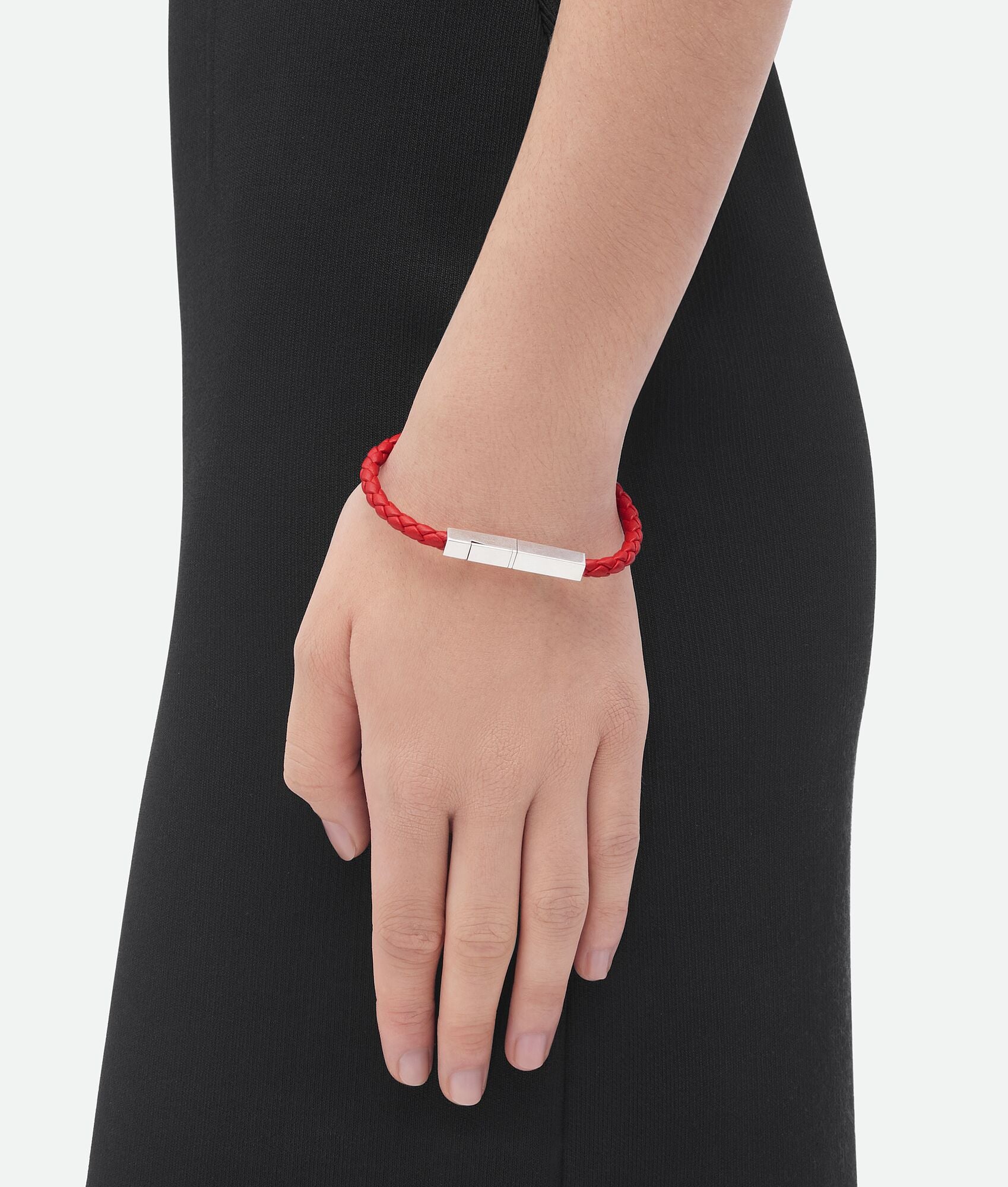 Bracelet crafted from braided leather recalling signature Intrecciato craftsmanship.