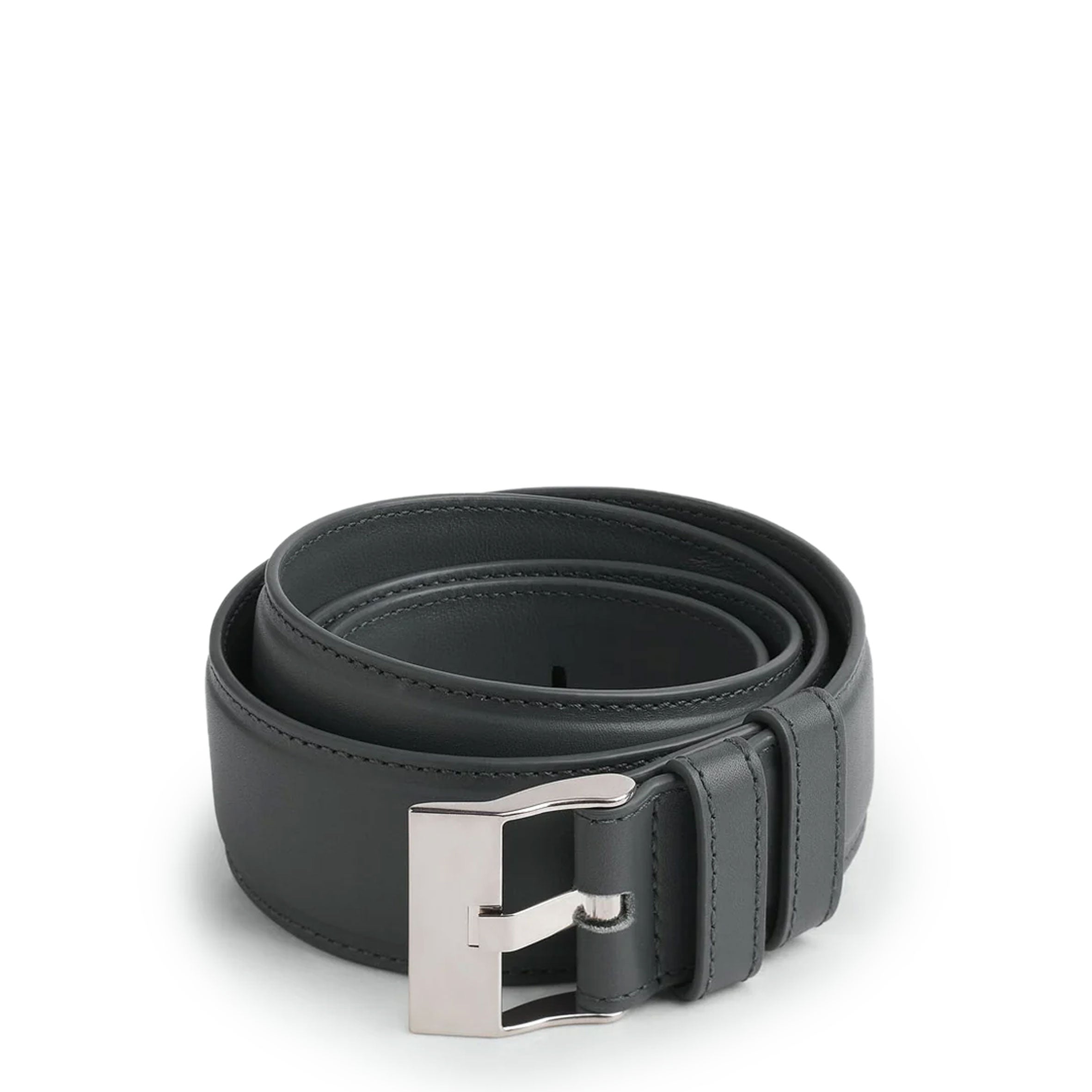 Smooth calfskin leather belt with watch buckle closure.