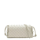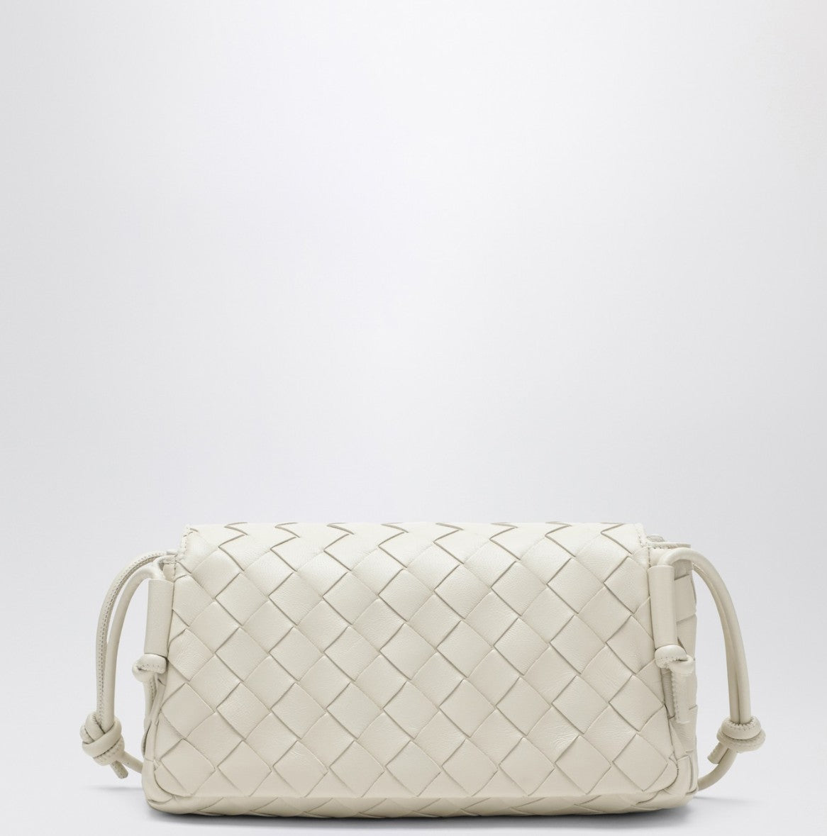 Pouch in Intrecciato nappa leather with adjustable tubular strap featuring sliding knot details.