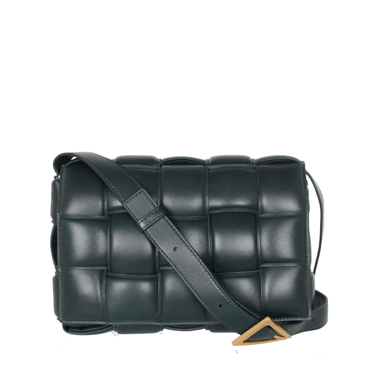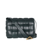 Crossbody bag in a double-face maxi weave. Made with wide double-face Nappa strips in an orthogonal weave. Interior is identical to exterior; fitted with a zipped pocket and magnetic closure. Adjustable shoulder strap folds inside the bag to carry as a clutch.