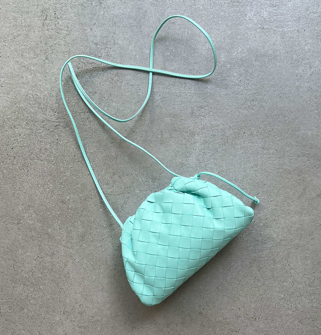 Soft voluminous clutch in woven leather. Magnetic frame covered in folds of handwoven leather. Iconic intrecciato weave in a subtly amplified new dimension. Single compartment lined in nappa. Slim leather shoulder strap. Smaller style of The Pouch, a brand icon that reflects Bottega Veneta’s heritage with a modern attitude.