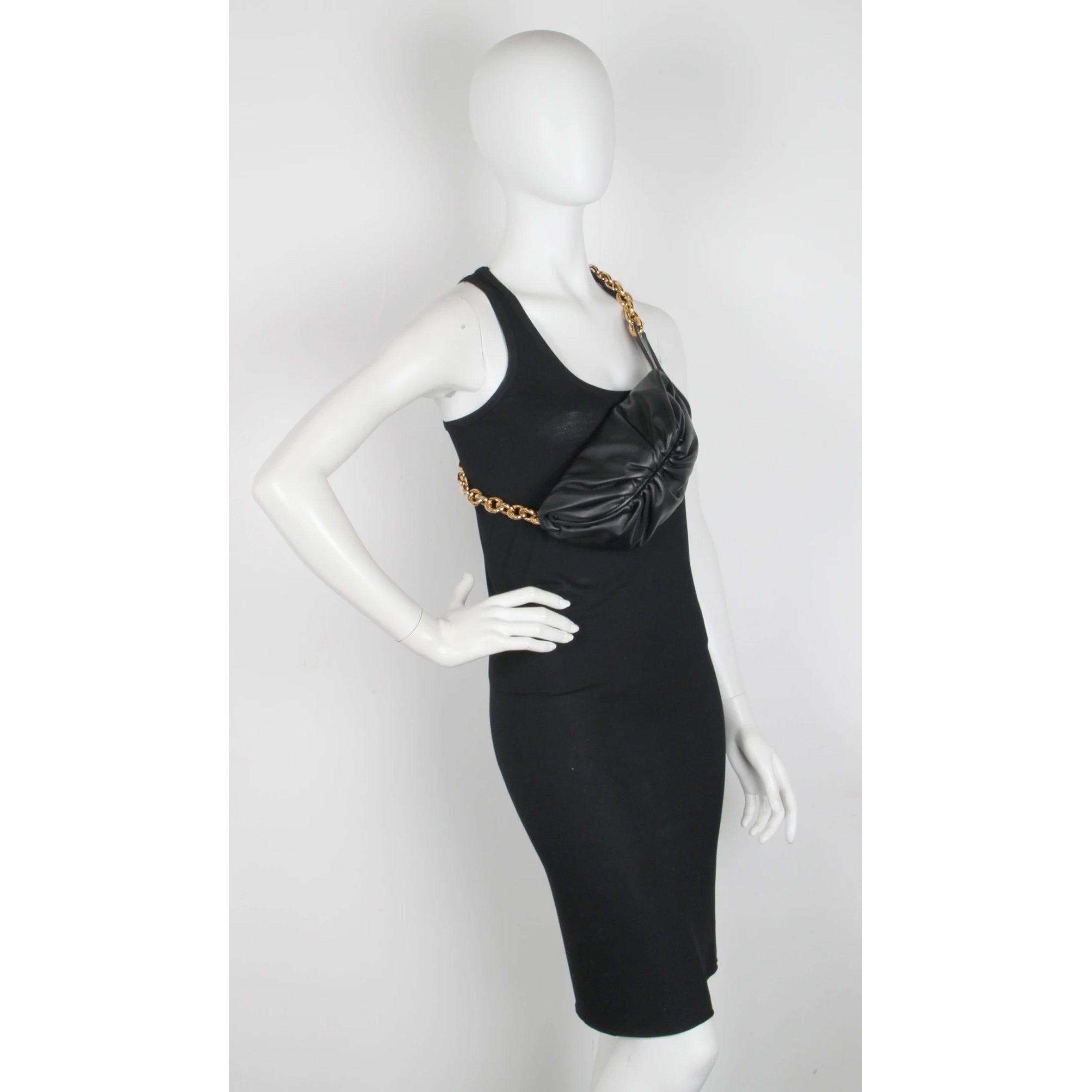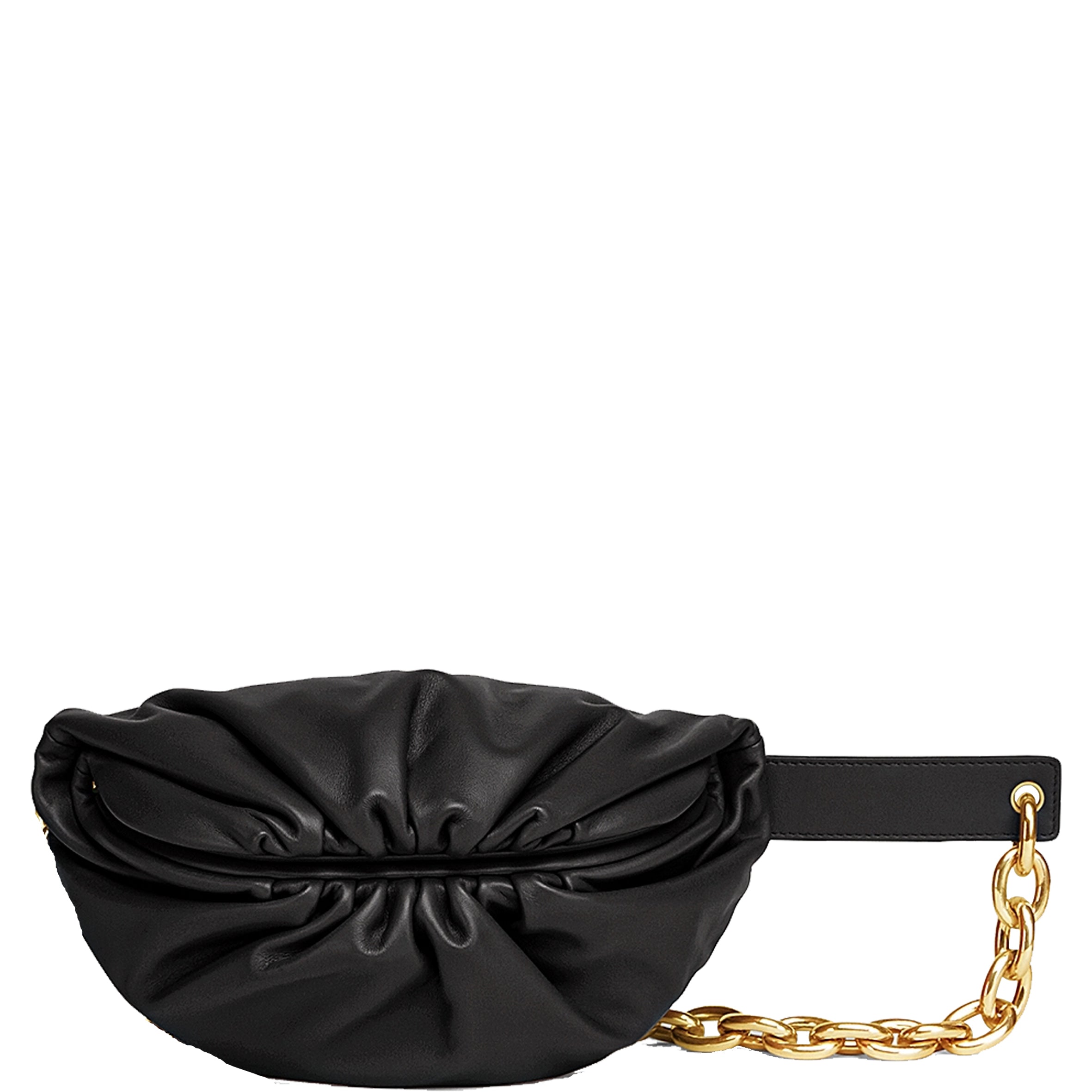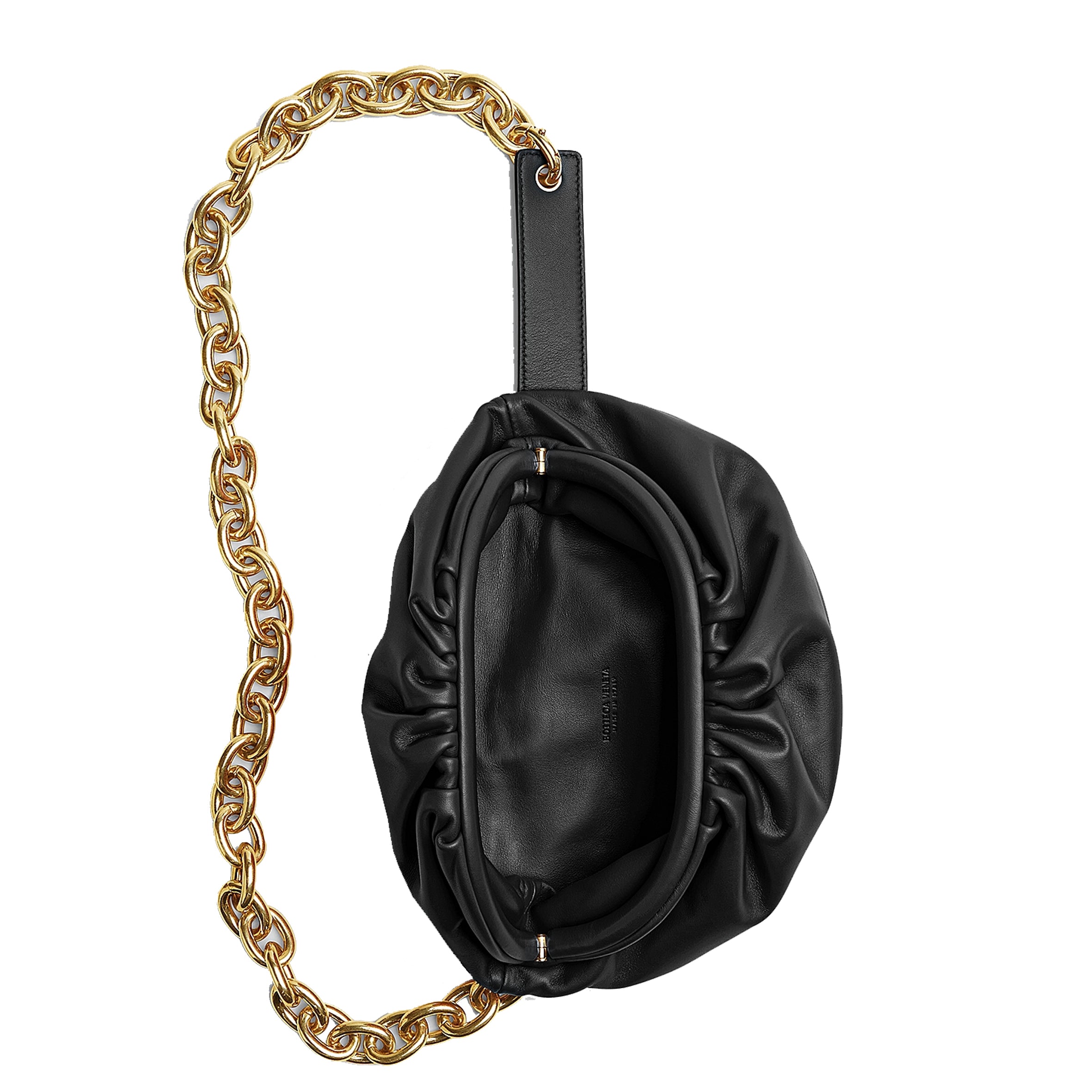 The Pouch Chain Belt Bag is a soft voluminous clutch in Nappa leather. This bag comes with an adjustable chain strap with carabiner closure. Featuring one main compartment and a metal frame closure. This bag can be worn crossbody or as a belt bag.
