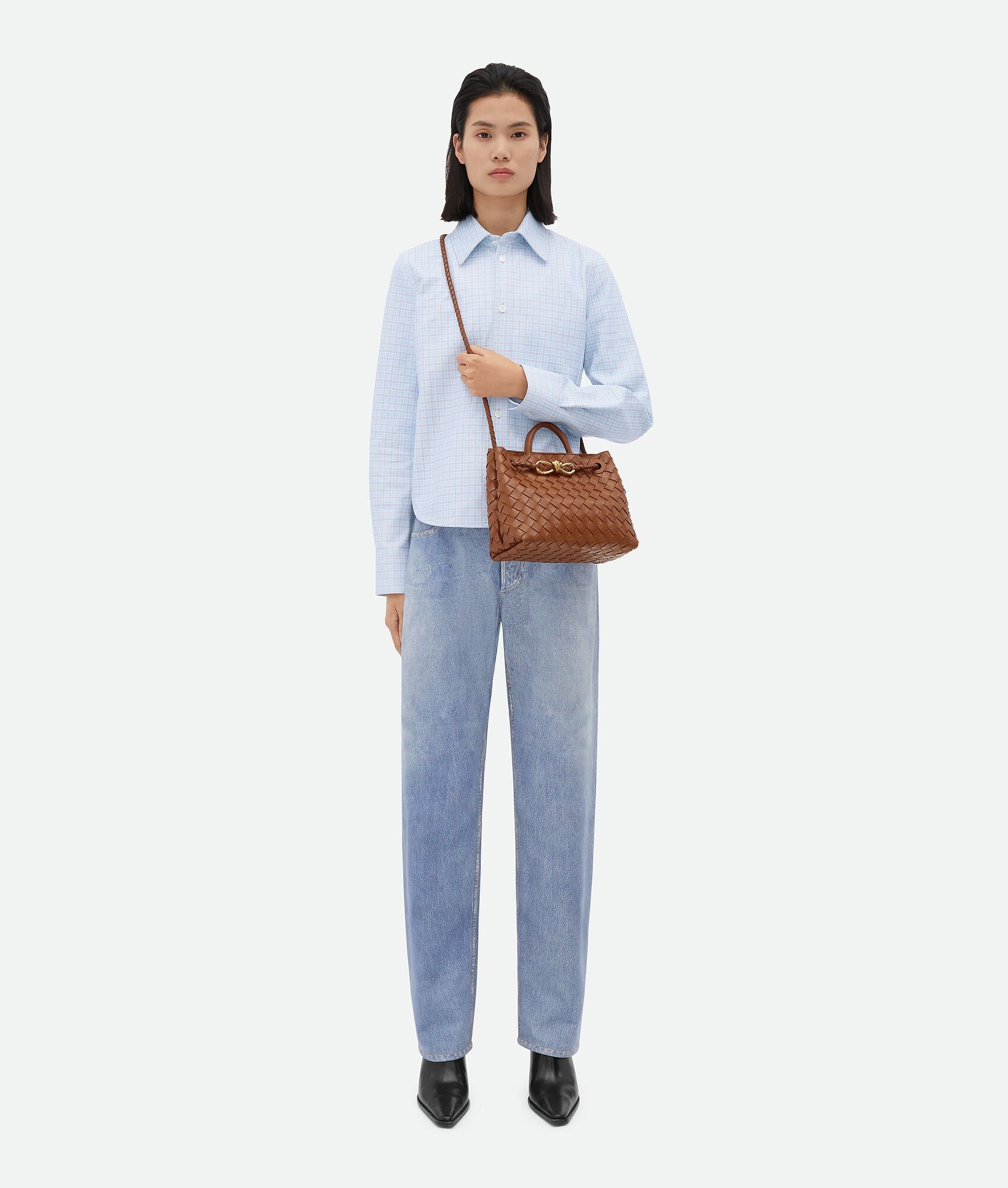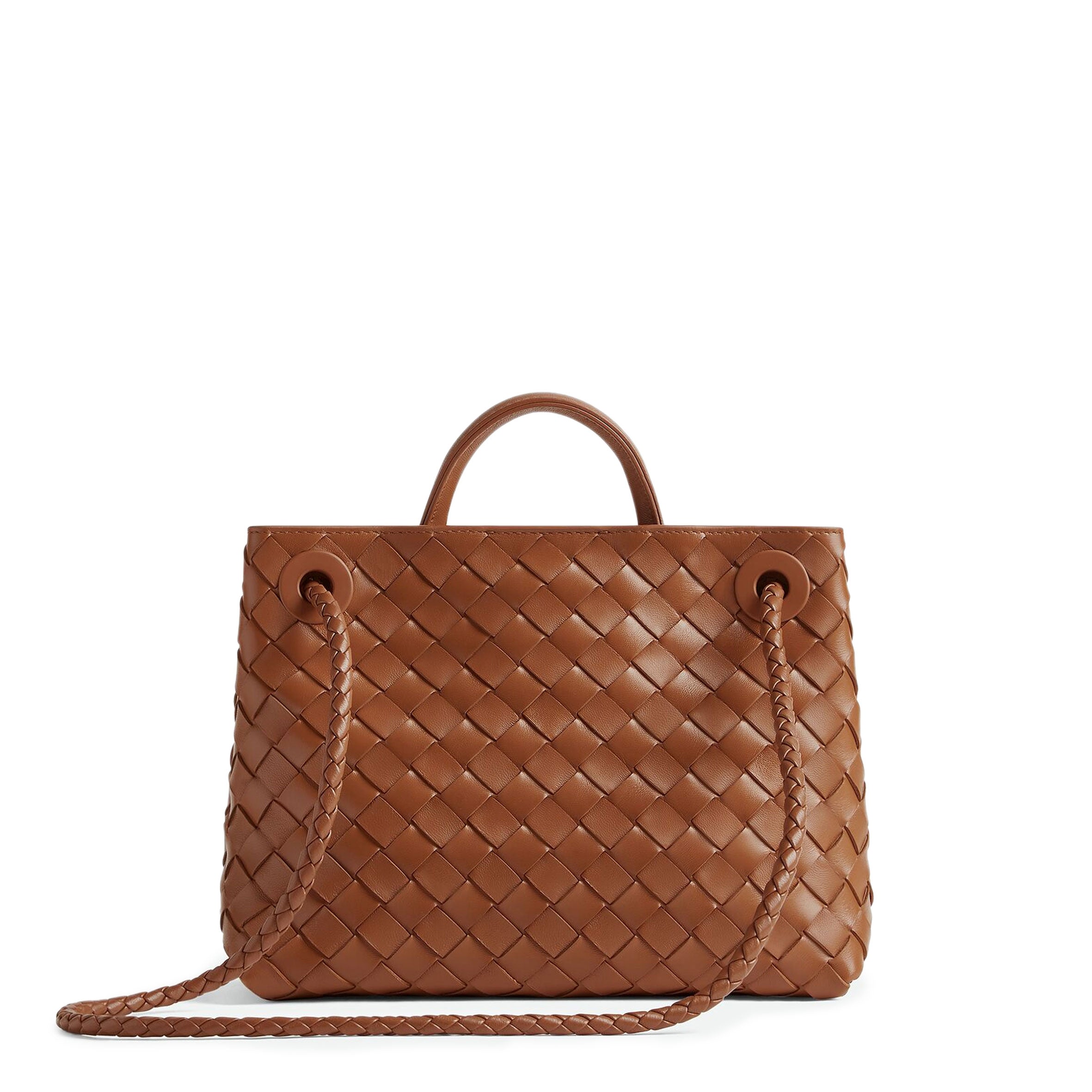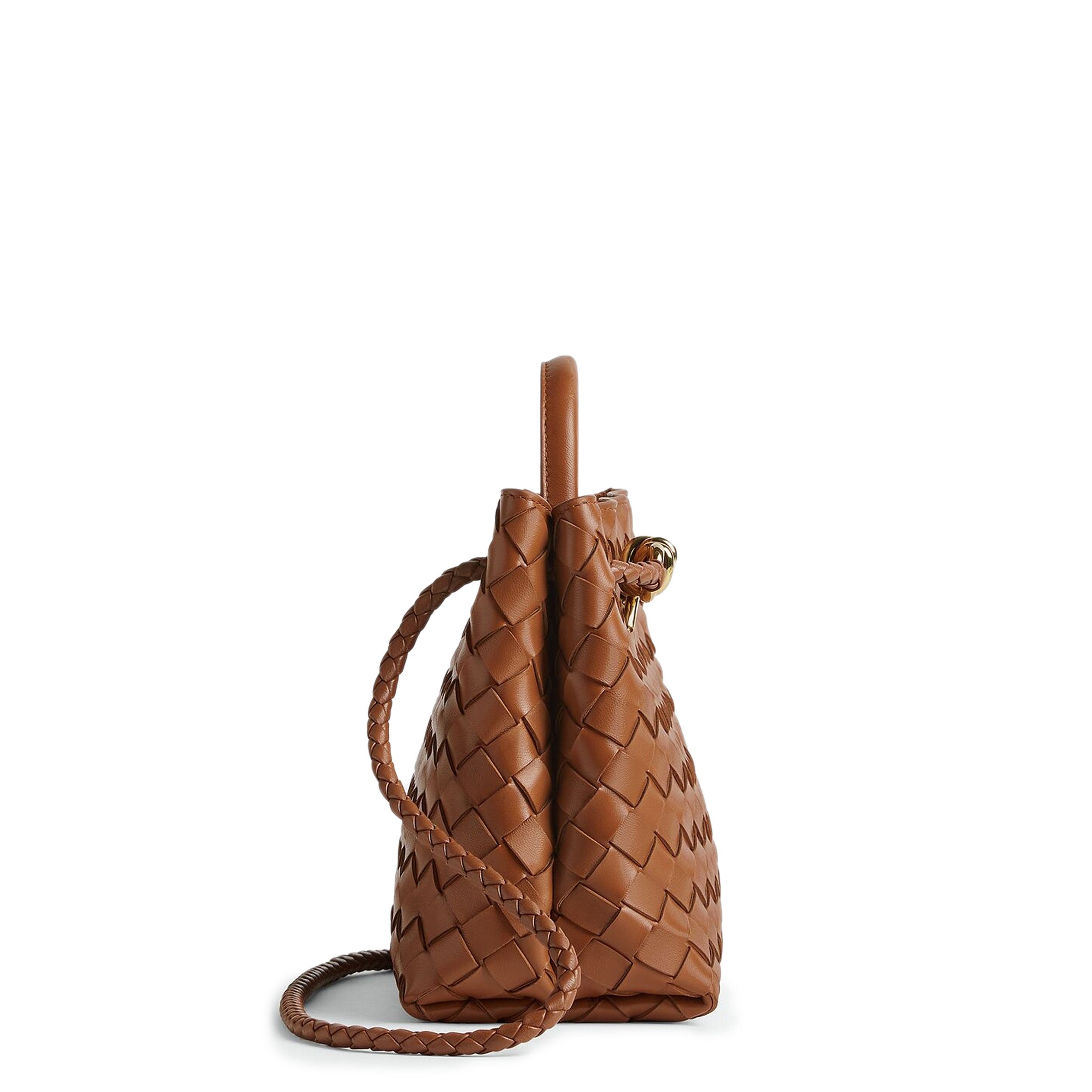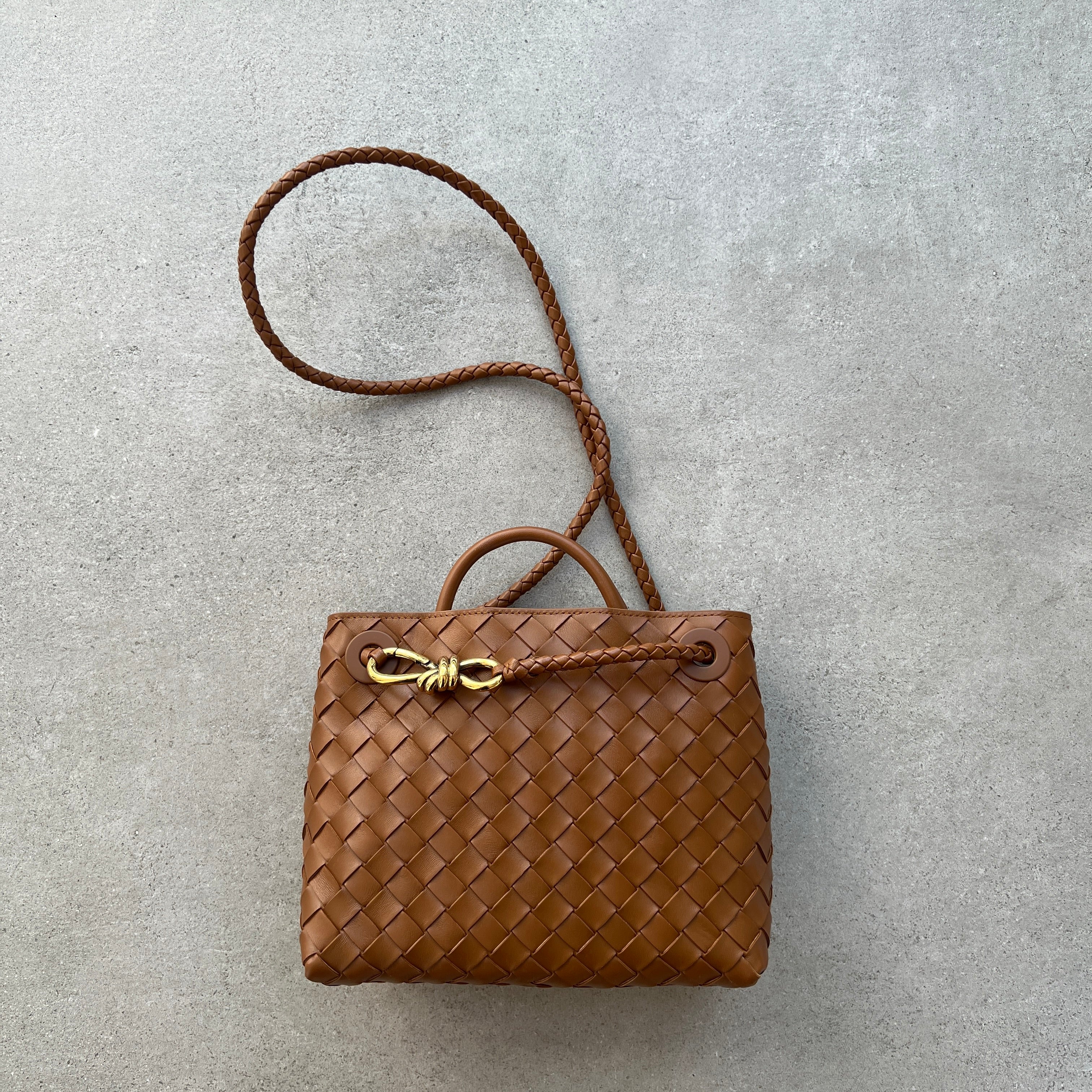 Andiamo is a new expression of the signature Intrecciato weave realised by the expert craftsmanship of artisans in the house’s atelier. Its name, Andiamo, “Let’s go” in Italian, embodies the spirit of the bag, a tribute to going places and the concept of craft in motion. The bag features a timeless Intrecciato silhouette woven by hand. A metal knot adorns and fastens its sliding braided straps, allowing it to be adjusted over the shoulder or across the body, giving the bag a soft tapered volume.