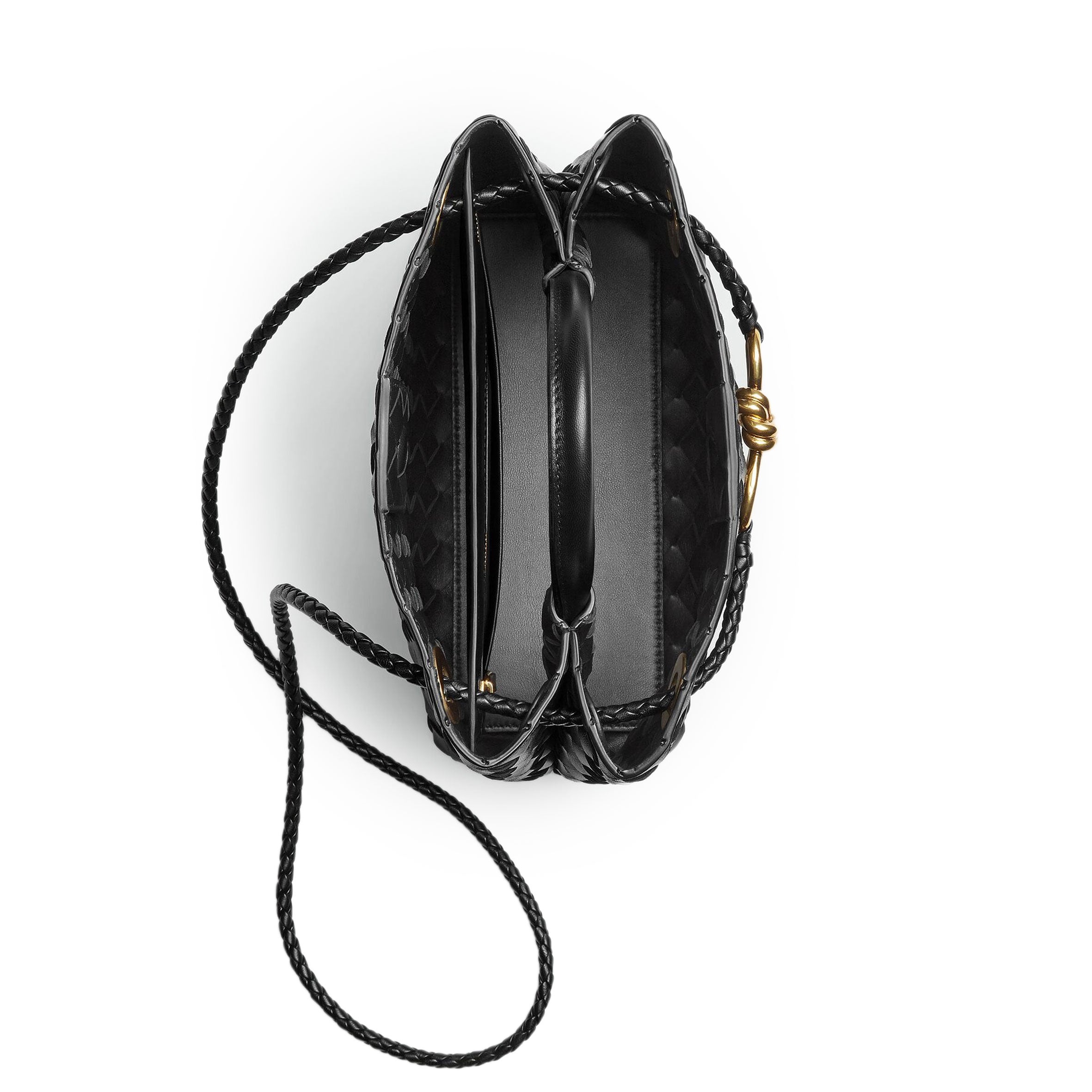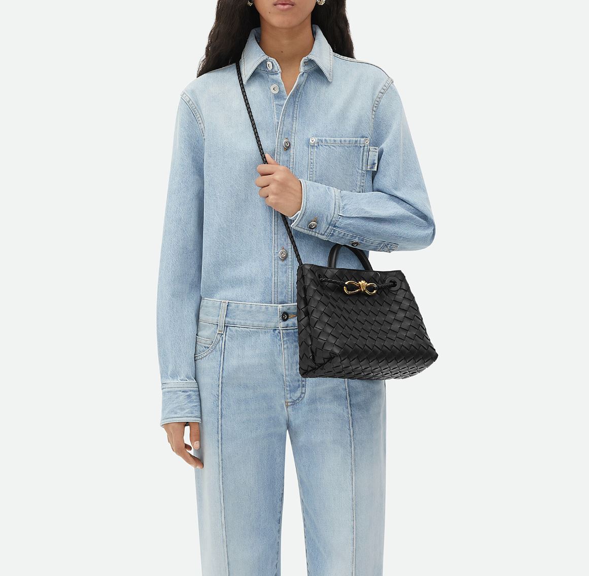 Andiamo is a new expression of the signature Intrecciato weave realised by the expert craftsmanship of artisans in the house’s atelier. Its name, Andiamo, “Let’s go” in Italian, embodies the spirit of the bag, a tribute to going places and the concept of craft in motion. The bag features a timeless Intrecciato silhouette woven by hand. A metal knot adorns and fastens its sliding braided straps, allowing it to be adjusted over the shoulder or across the body, giving the bag a soft tapered volume.