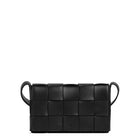 Crossbody bag in a double-face maxi weave. Made with wide double-face nappa strips in an orthogonal weave. Interior is identical to exterior; fitted with a zipped pocket and magnetic closure. Strap folds inside bag to carry as a clutch. Slim, adjustable shoulder strap