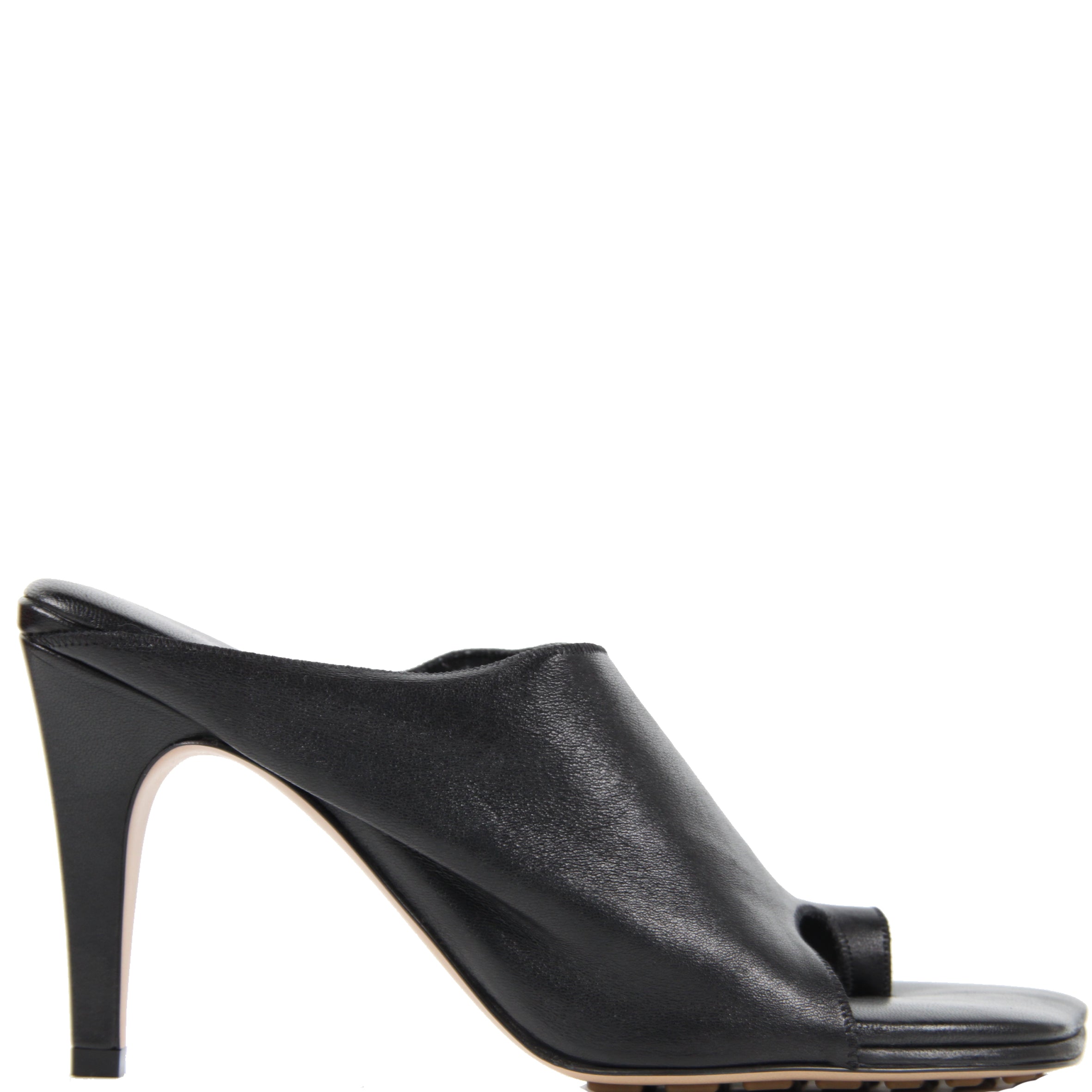 This open toe mule style from Bottega Veneta is made from incredibly soft leather and features their signature squared toe look.