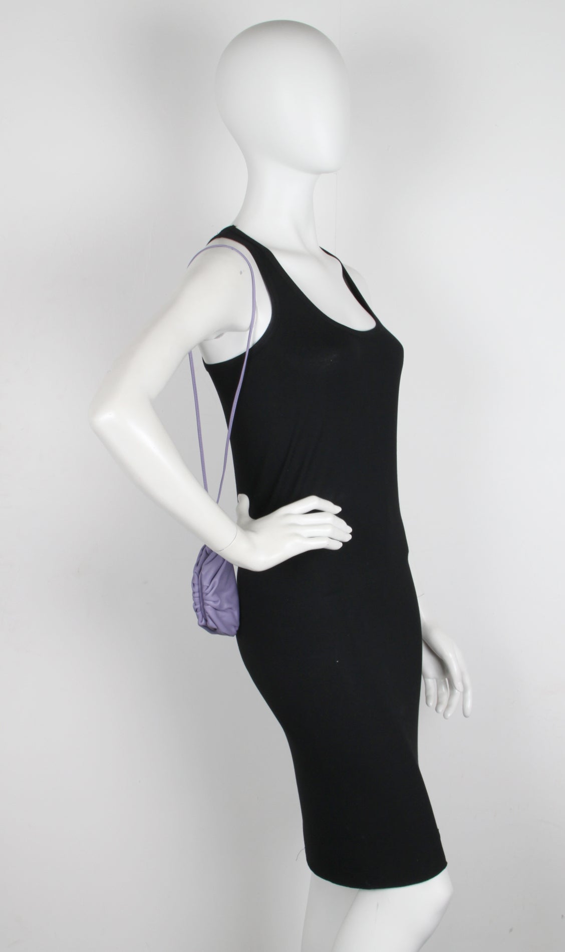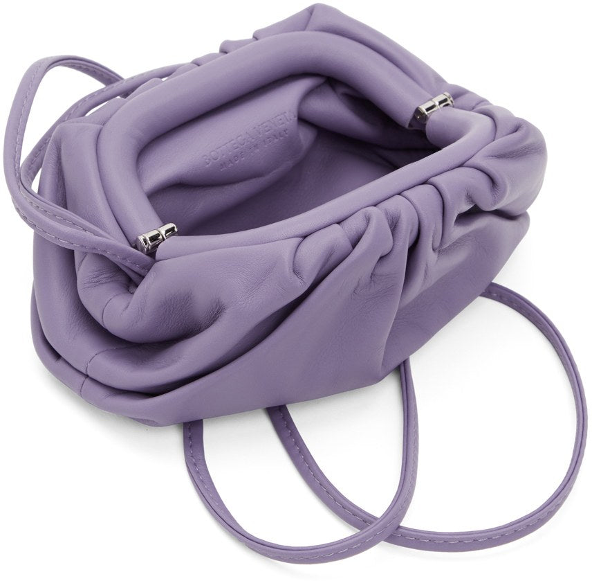 Mini clutch in smooth Nappa (miniature version of The Pouch). Features a magnetic frame, single compartment lined in natural suede and a slim leather shoulder strap.