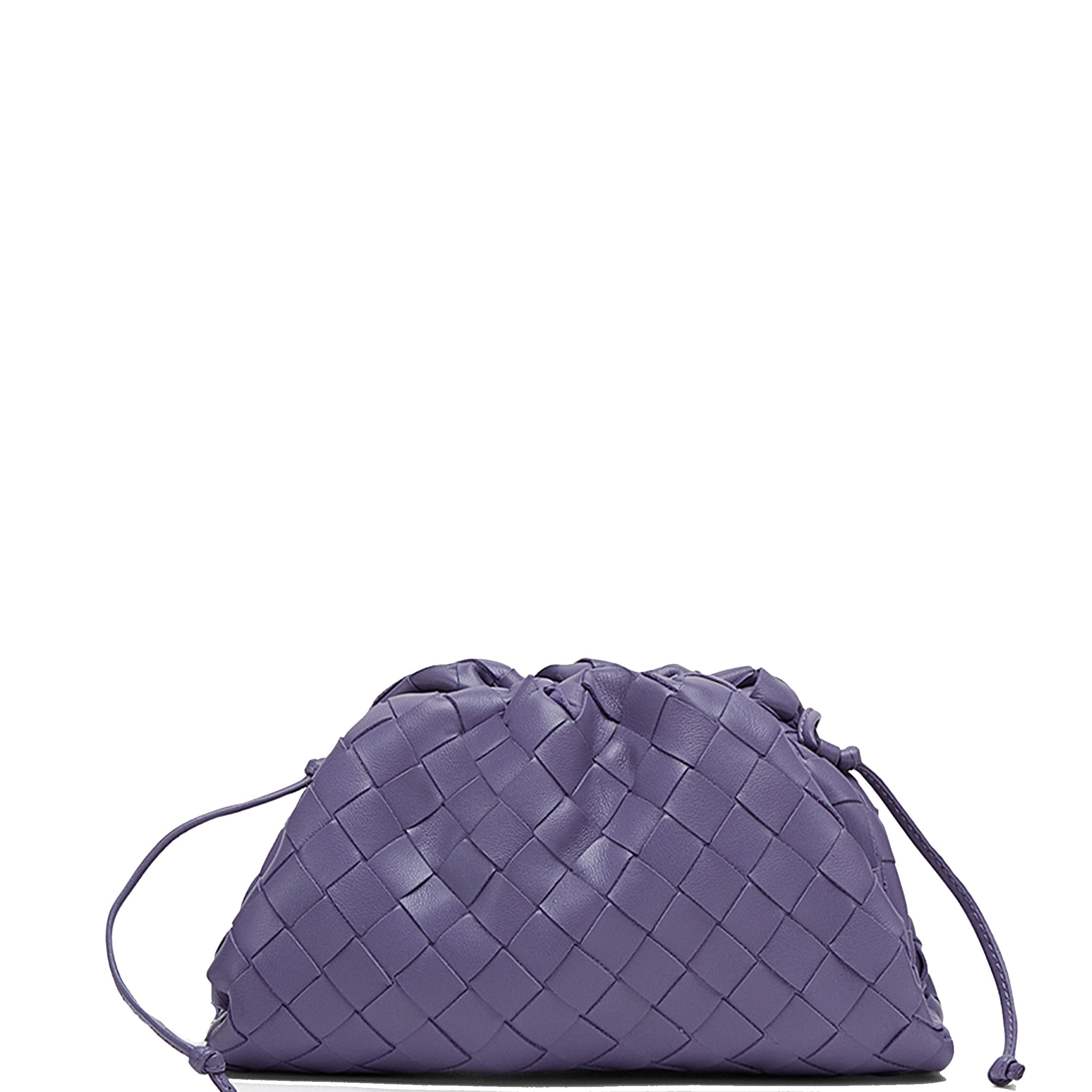 Soft voluminous clutch in woven leather. Magnetic frame covered in folds of handwoven leather. Iconic intrecciato weave in a subtly amplified new dimension. Single compartment lined in nappa. Slim leather shoulder strap. Smaller style of The Pouch, a brand icon that reflects Bottega Veneta’s heritage with a modern attitude.