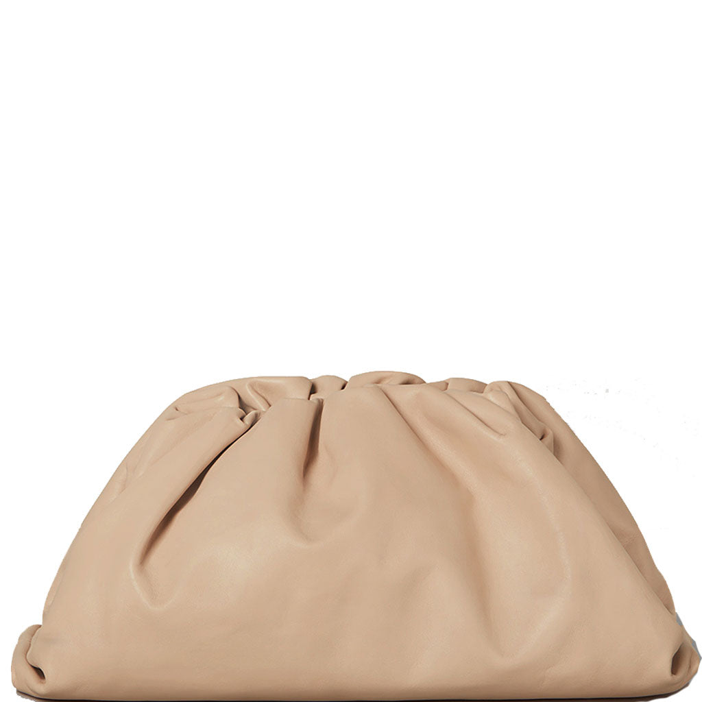 Soft oversize clutch in exceptionally supple calfskin. Magnetic frame enveloped in folds of Butter Calf leather to create a voluminous, rounded shape. Single compartment lined in natural suede. A new brand icon, The Pouch reflects Bottega Veneta’s heritage with a modern attitude.