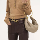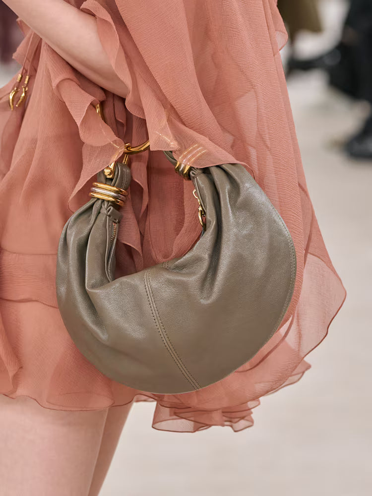Inspired by the Maison's Archives, this small Bracelet Hobo bag is crafted from shiny grained calfskin. The supple, rounded shape is elevated by a bracelet handle and stacked two-toned rings at the ends.