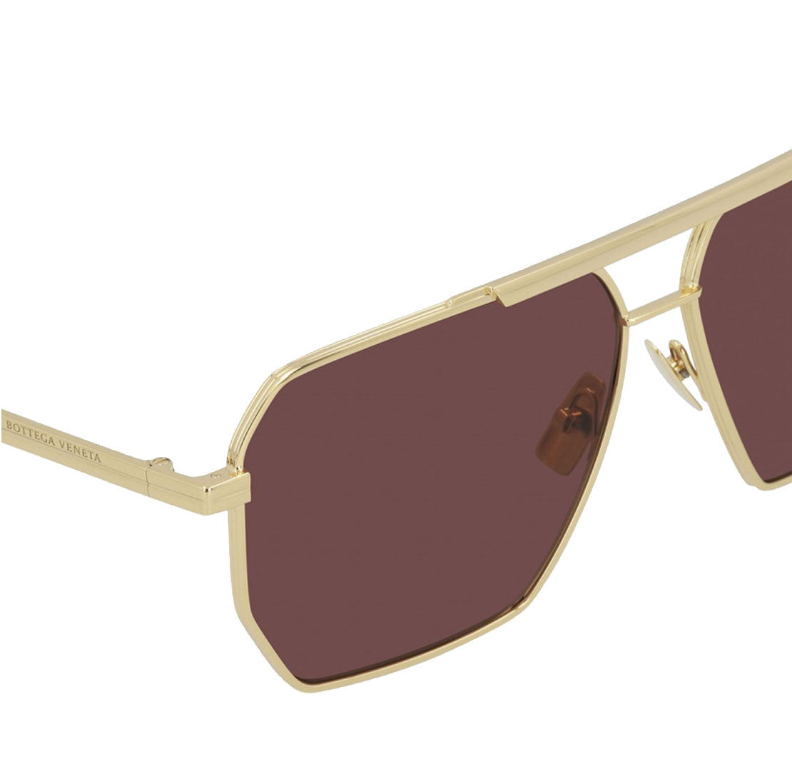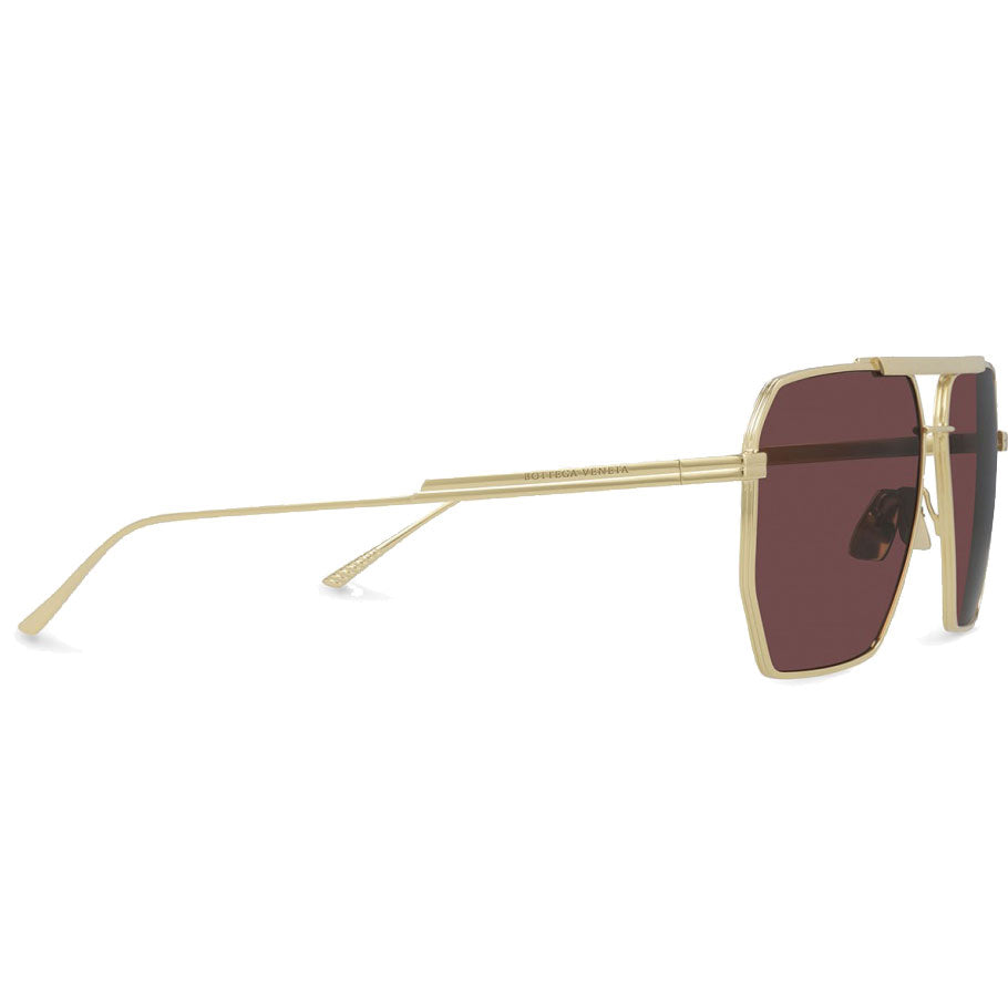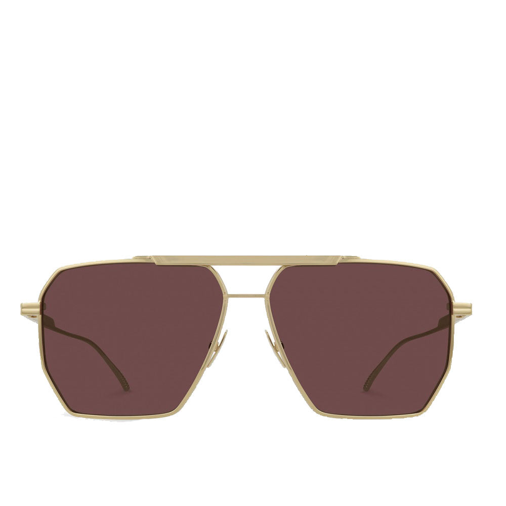 In a geometric aviator-inspired shape, these gold-tone metal sunglasses from Bottega Veneta have a double nose bridge, brown tinted lenses.