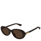 Oval sunglasses in recycled acetate with signature gold-finished ribbon detailing.