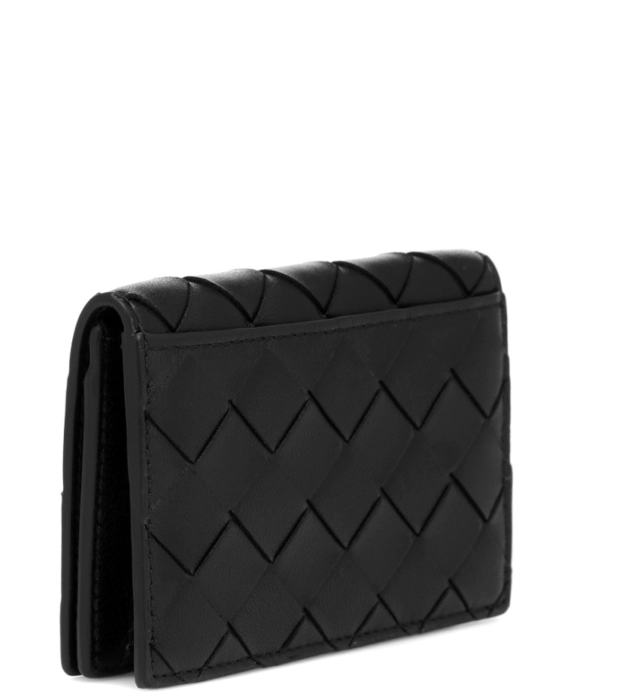 Bi-fold card case in woven nappa. Features one main compartment for cards and one card slot, one external pocket and smooth calf interior