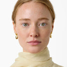 The Carla Earrings combine two contrasting elements – a delicate spiral stud and a bold oval drop – for a playful yet polished finish. Lightweight and crafted from 18 carat gold-plated silver with a strong silhouette, they transition seamlessly from day to night.