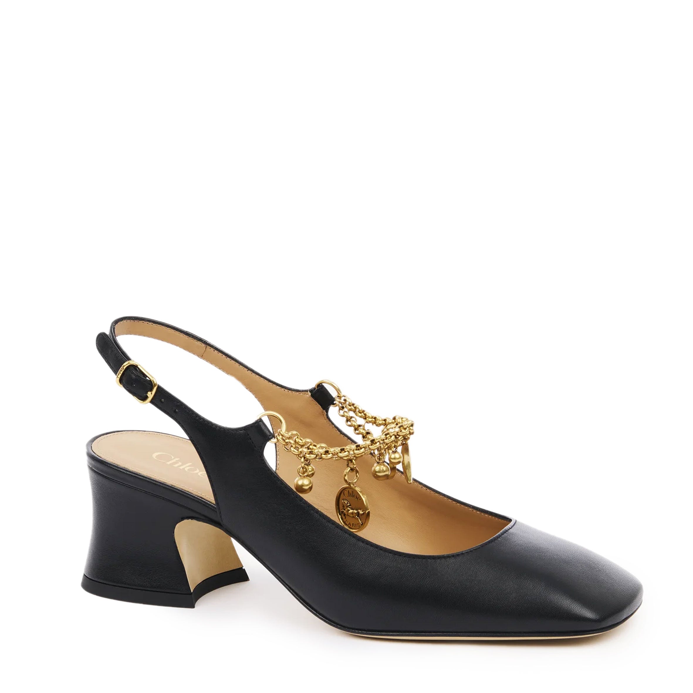Crafted from nappa lambskin, the Chloé Charms slingback pumps combine a flared block heel with an adjustable buckled ankle strap. A gold-tone chain embellishes the foot with Chloé Charms inspired by the Maison's heritage.