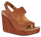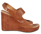 Suede covered wedge with platform. Leather top which closes with Velcro fastening at ankle.